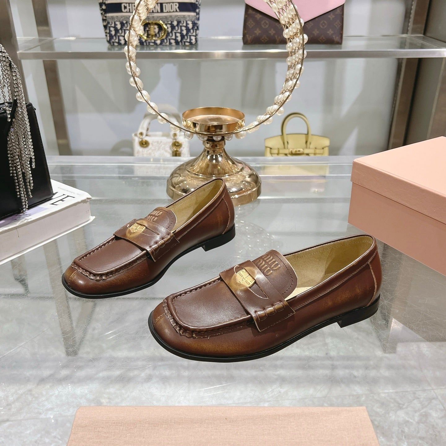 Miu 25C Loafers Coffee Cowhide 235302
