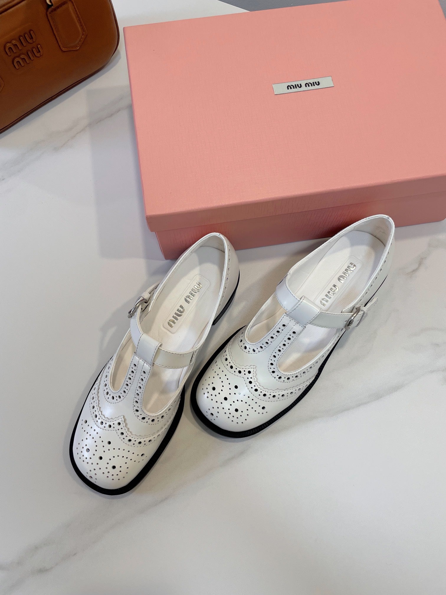 Miu Loafers T-Strap White Cowhide