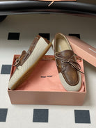 Miumiu Beige and Brown canvas leather loafer 227141