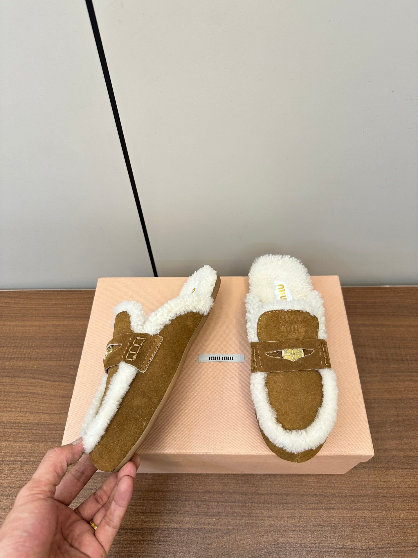 Miu Mule Half Fur Vintage Brown Suede