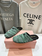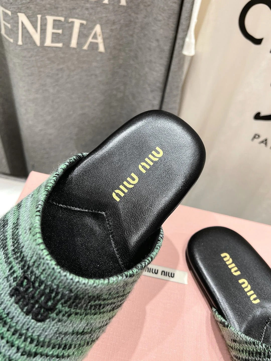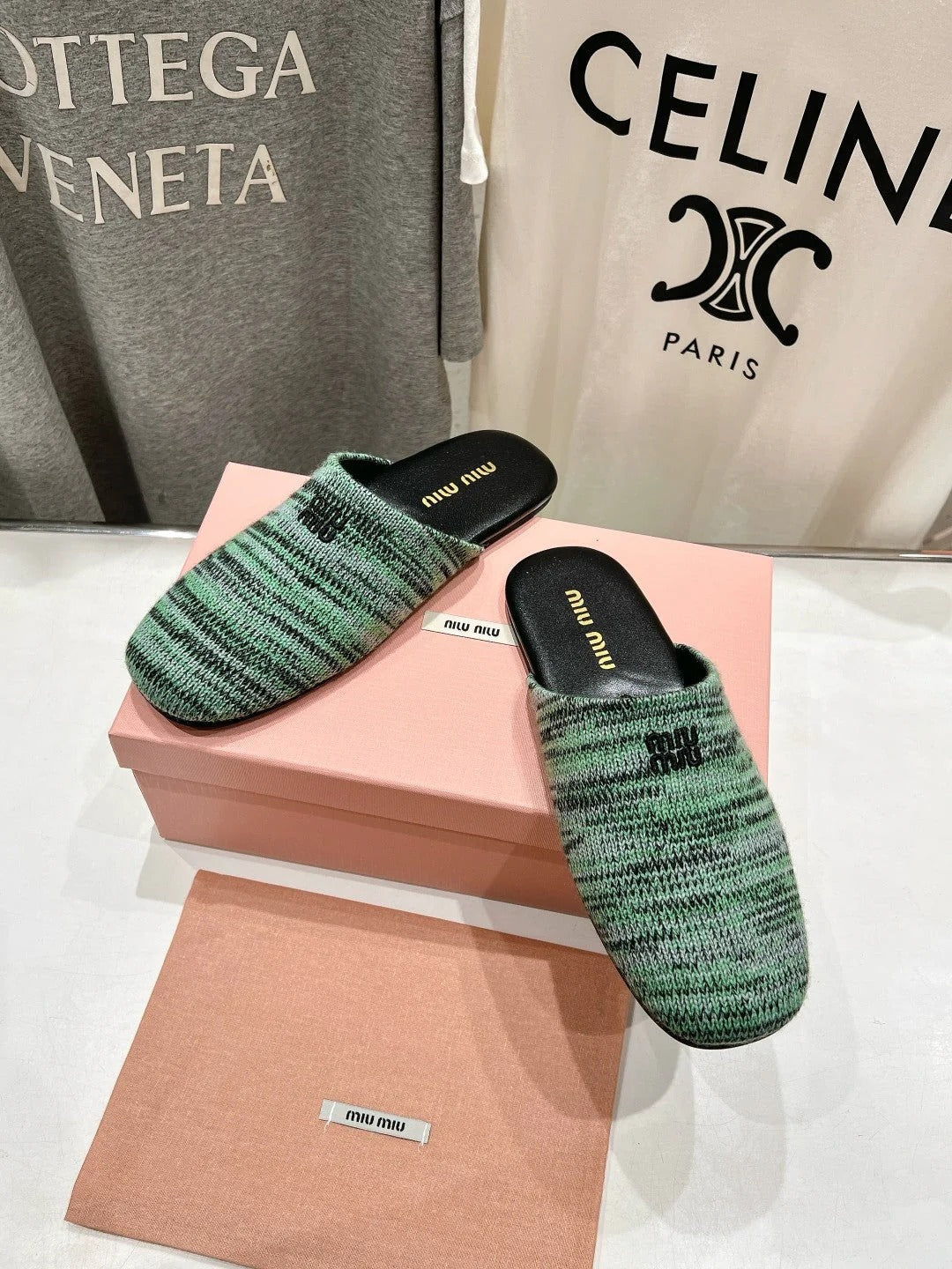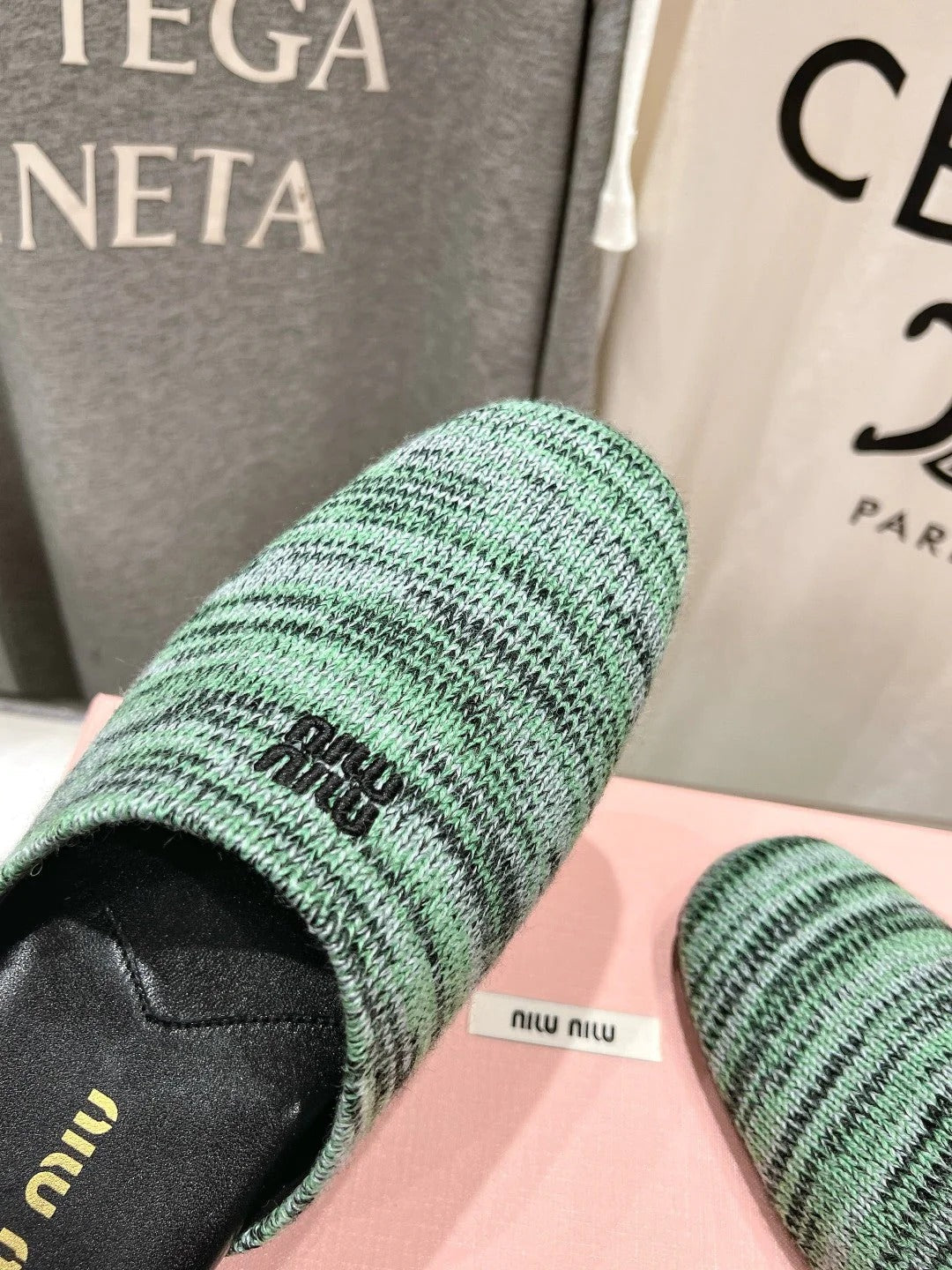 KNITTED MULES IN LIGHT GREEN MIX BLACK WOOL