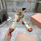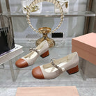 Miu 25C Mary Jane 45MM Beige Cream Mix Brown Fabric 235365