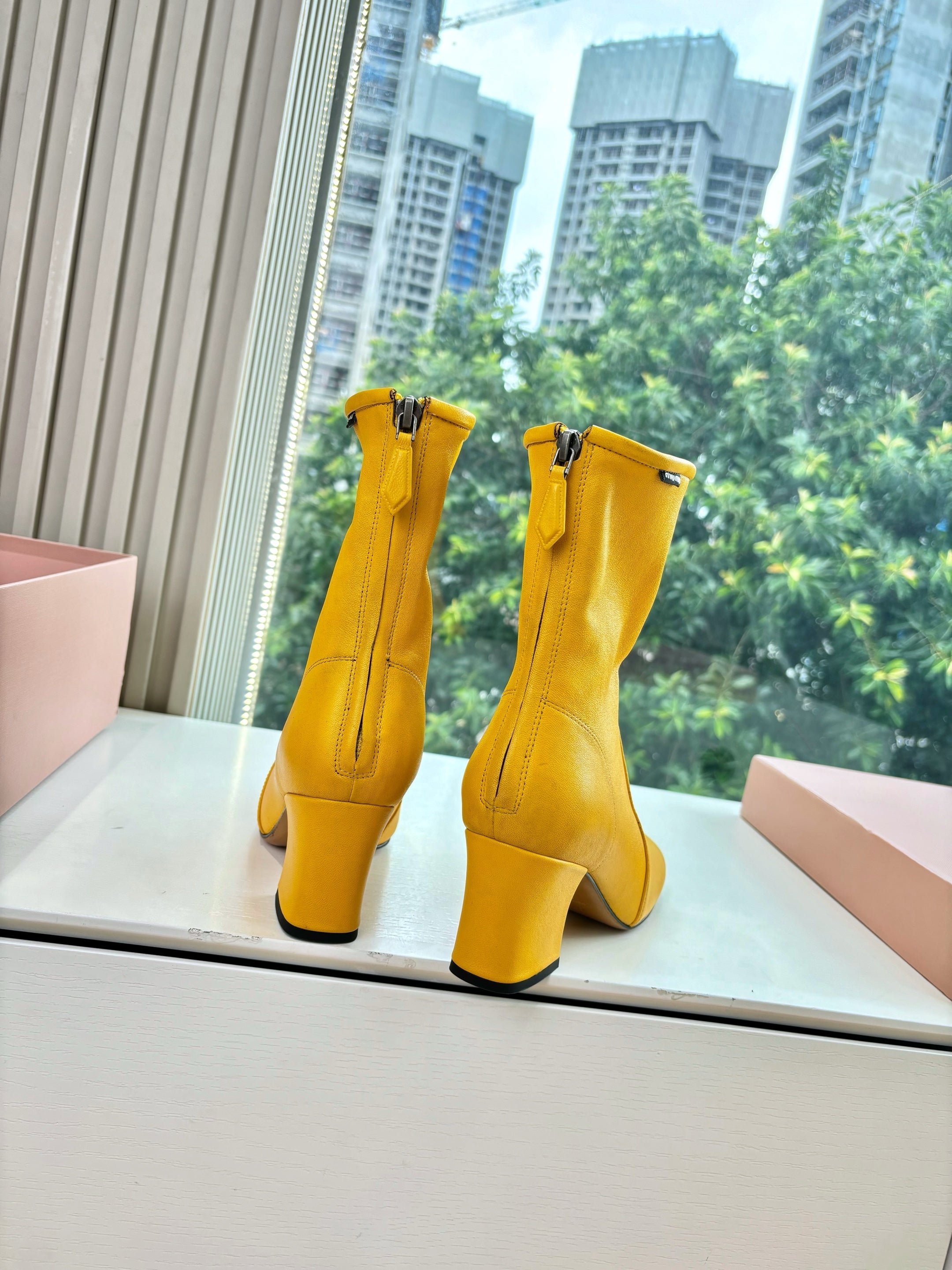 Miu Bootie Yellow Nappa Leather 506641