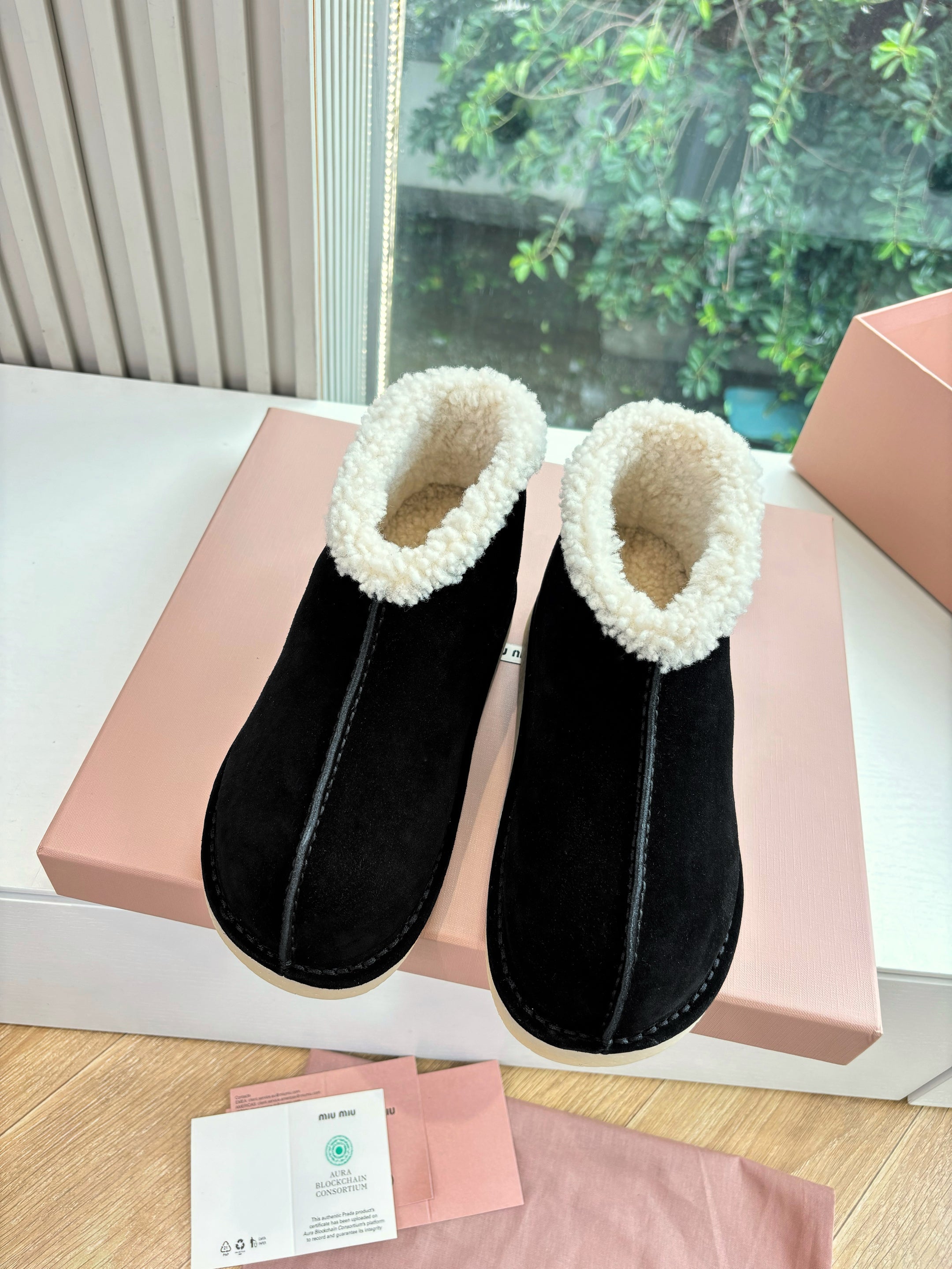 Miu FW25 Snow Boots Black White Wool Suede 506651
