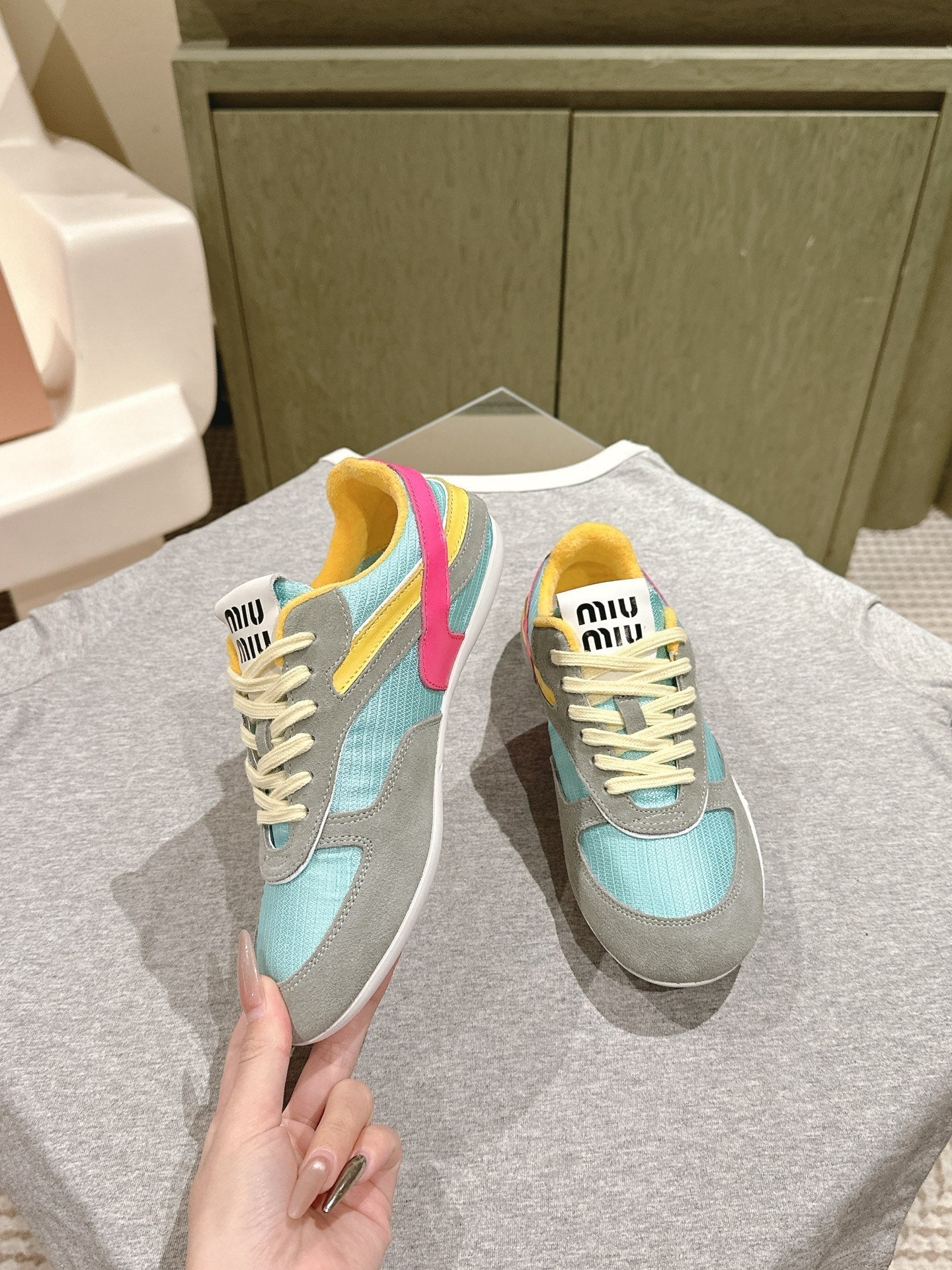 Miu Gymnasium Sneakers Mulitcolor Technical Fabric & Suede 445727