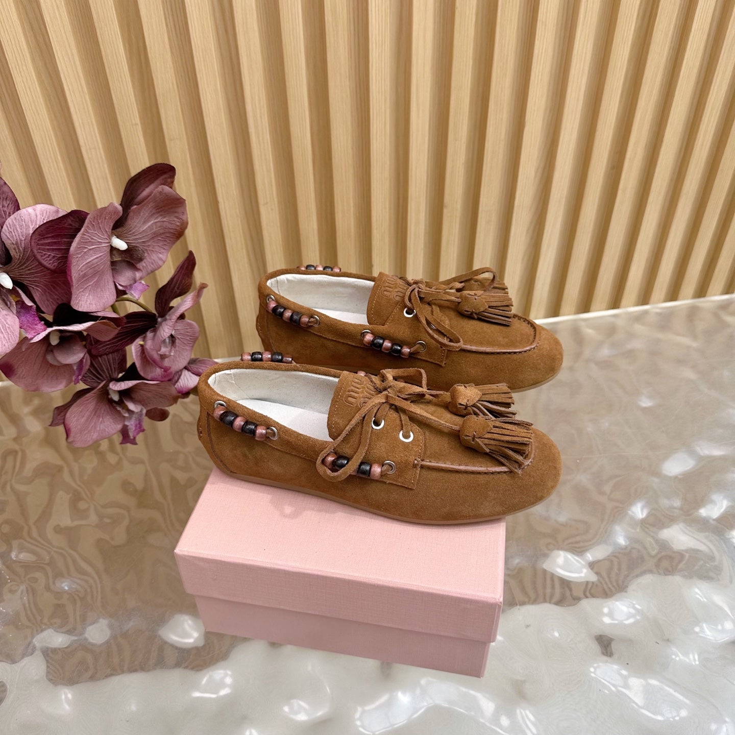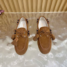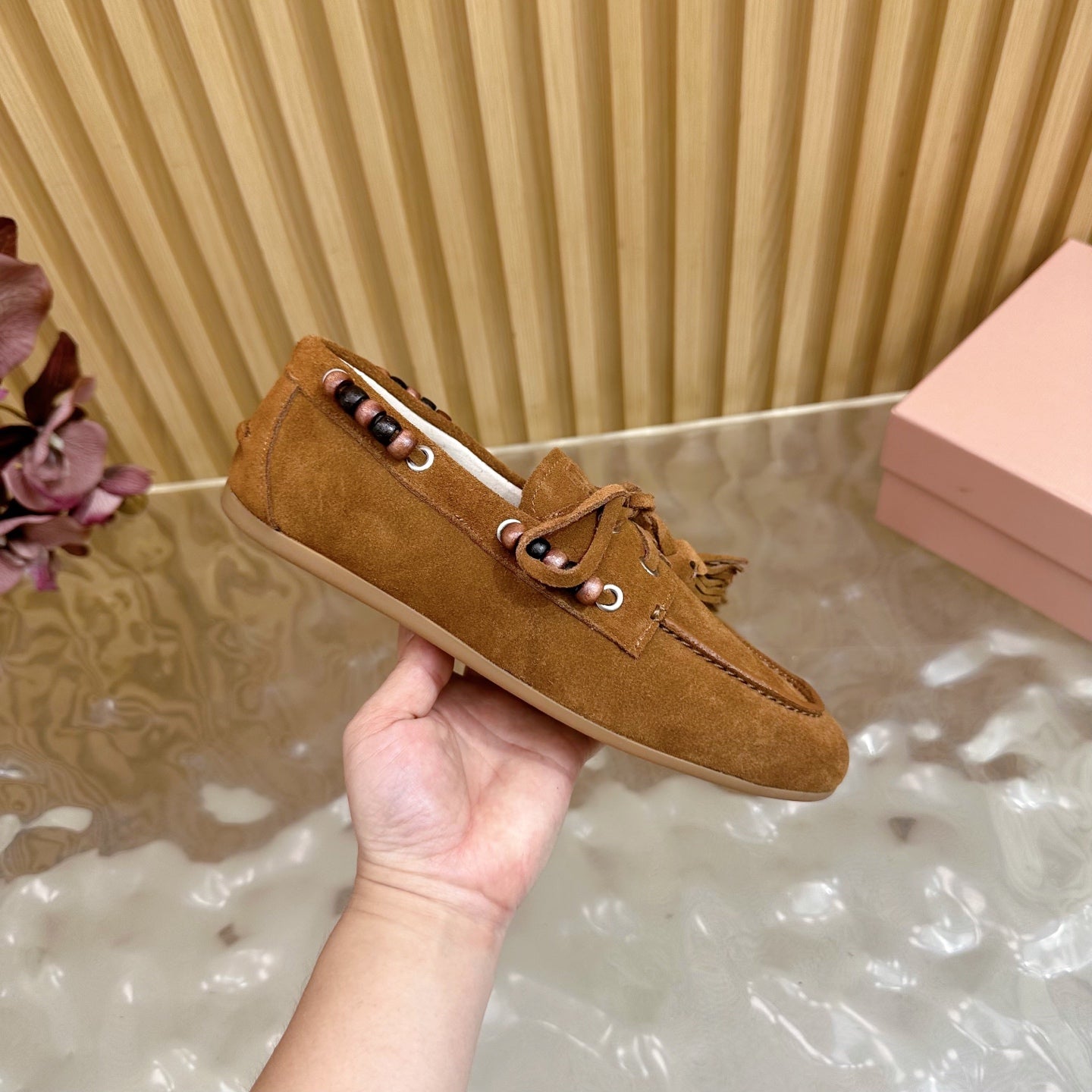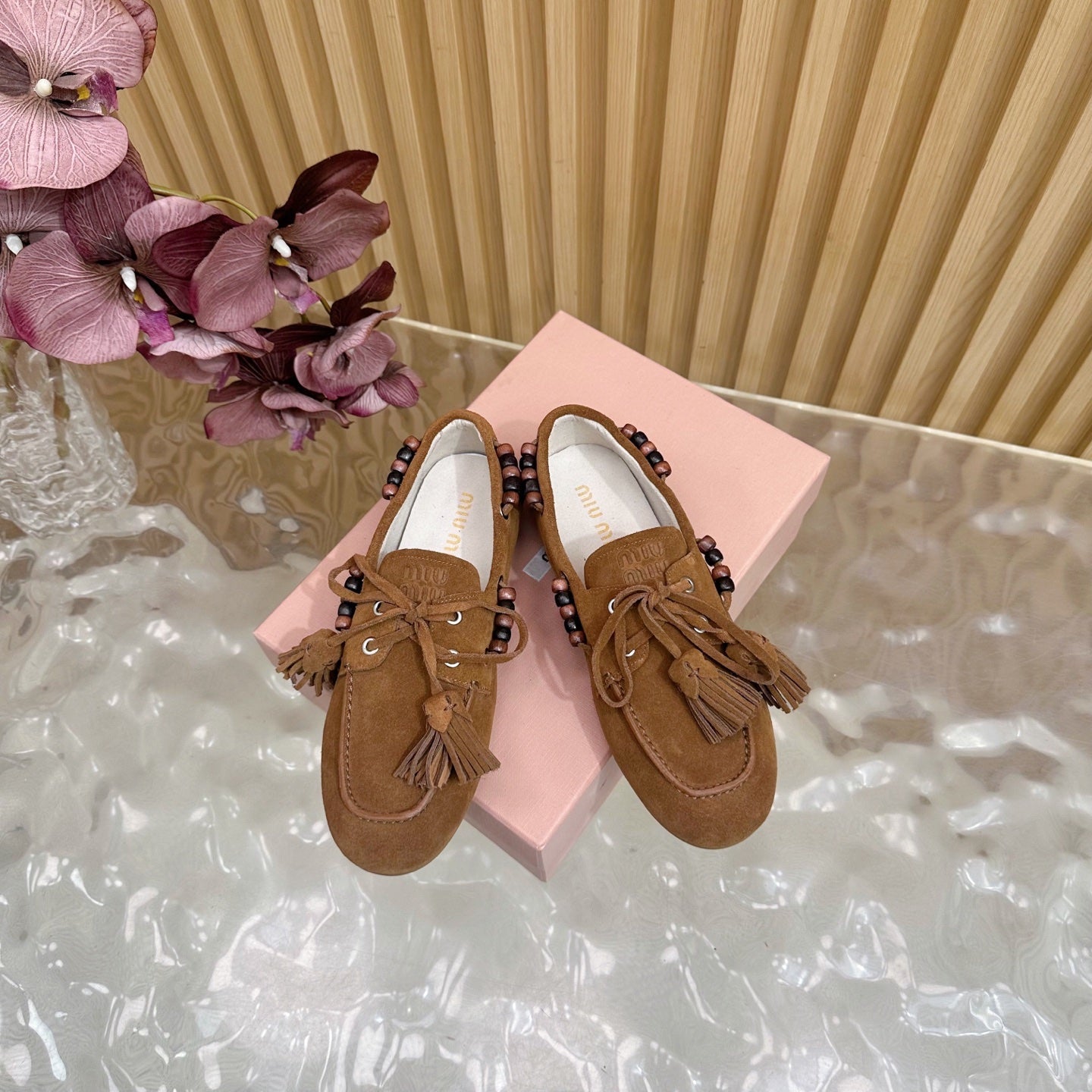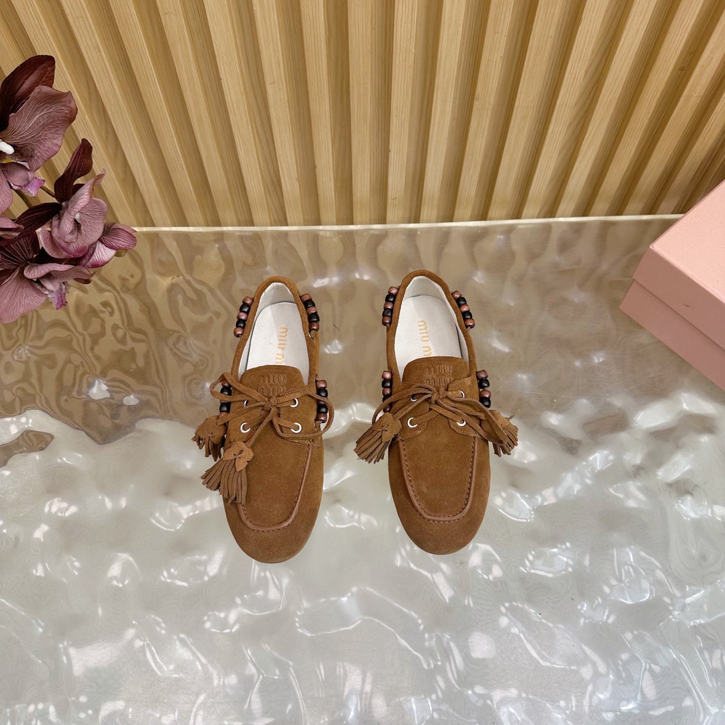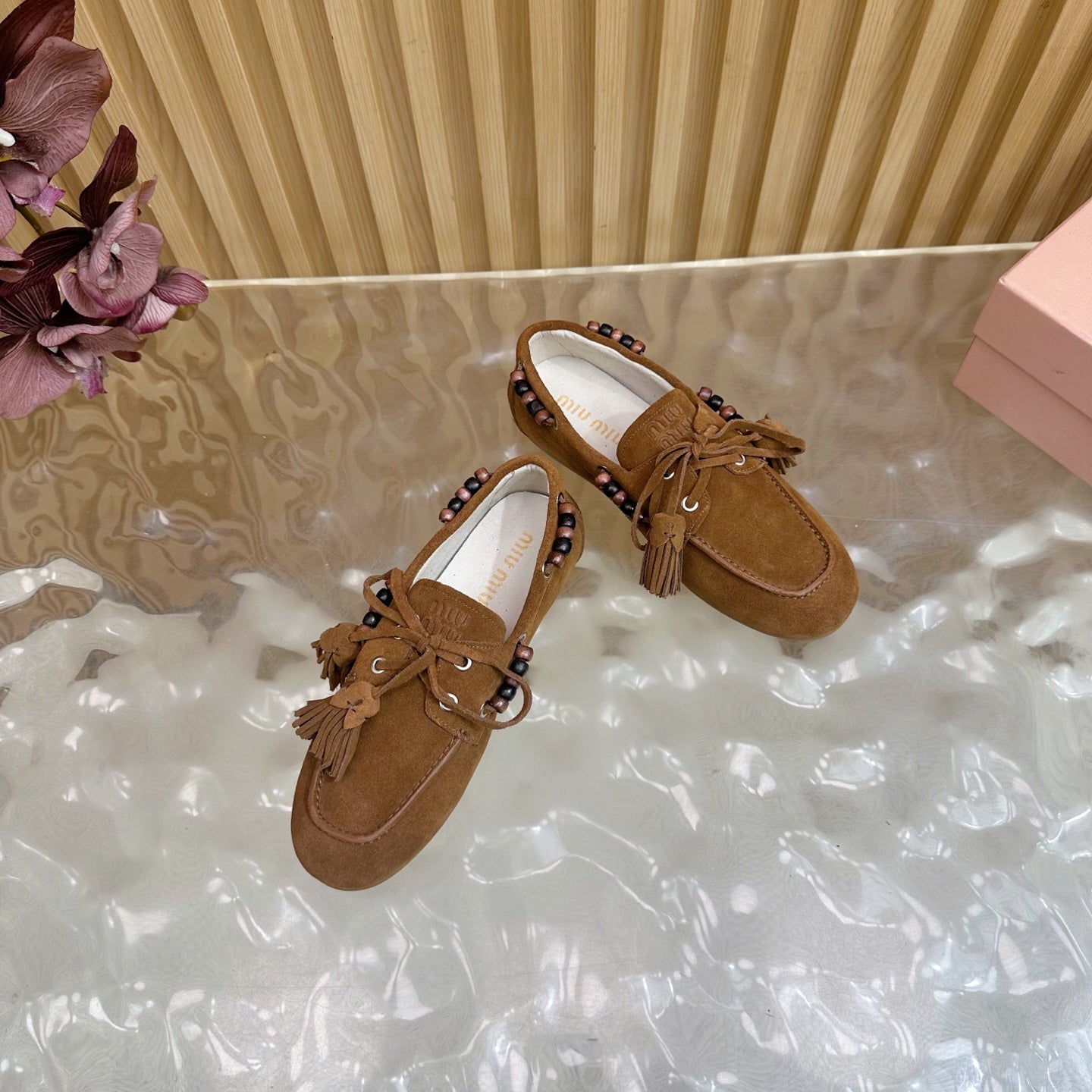 Miu Laces Eyelet Flat Loafer Deep Brown Suede 498167
