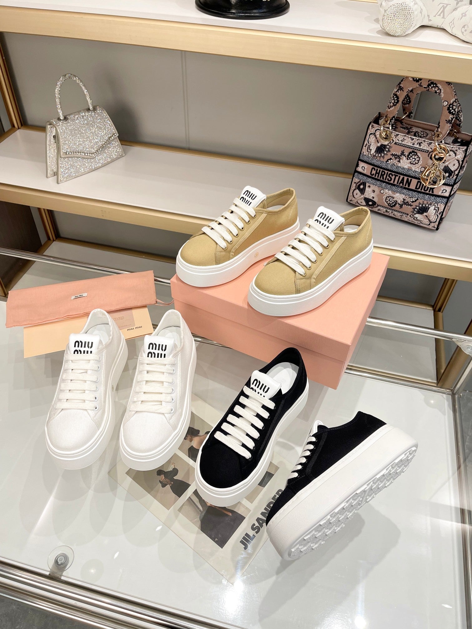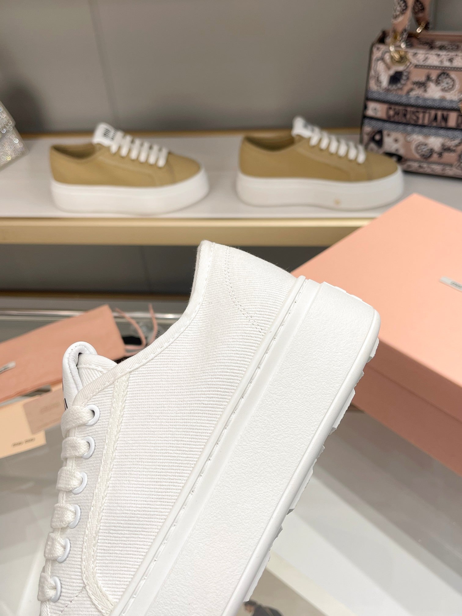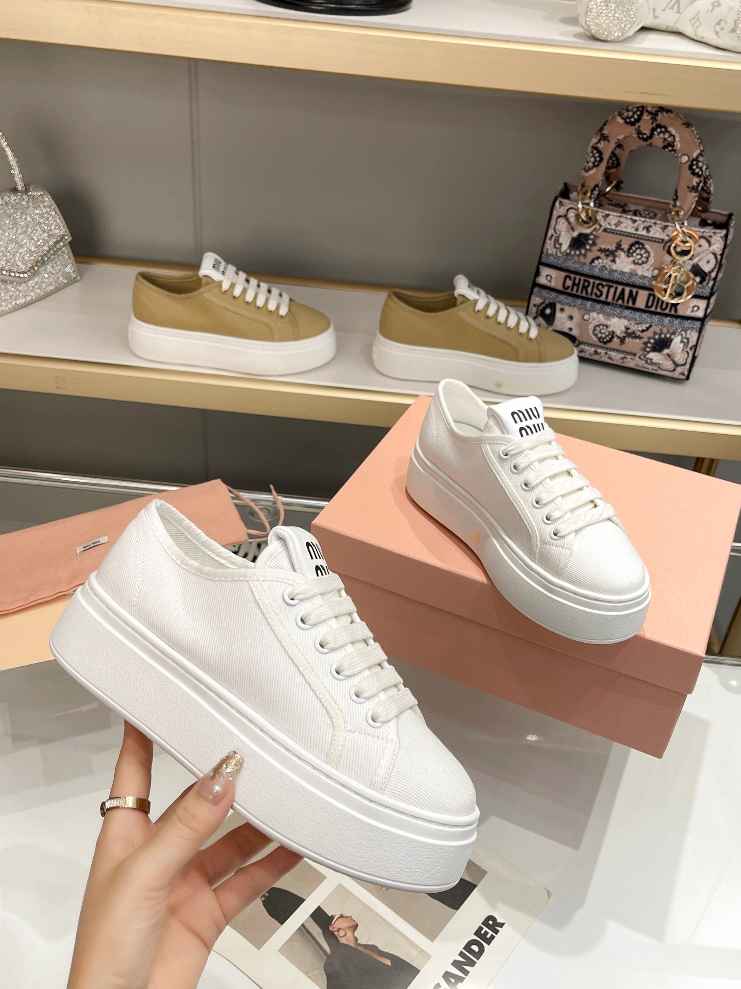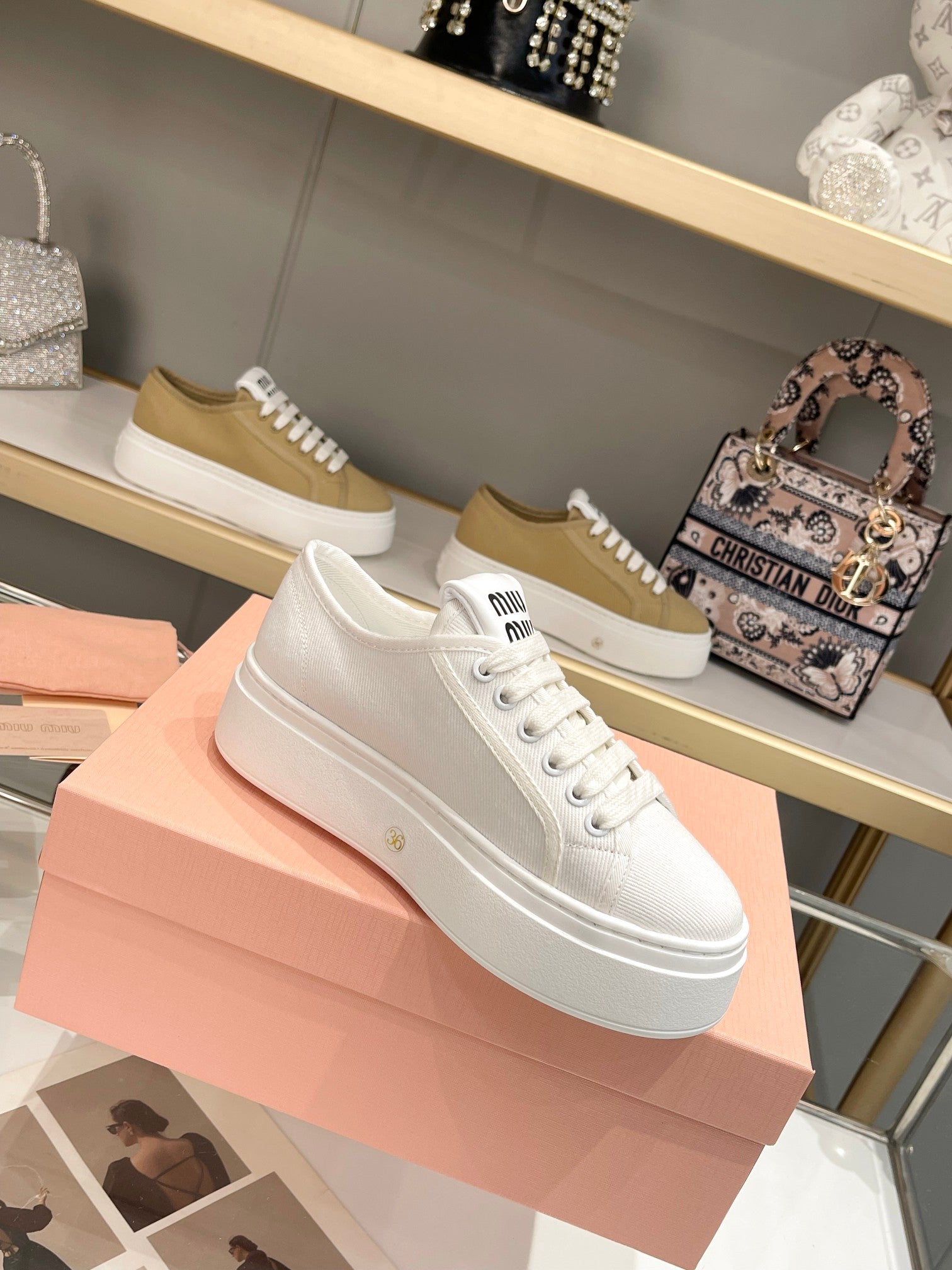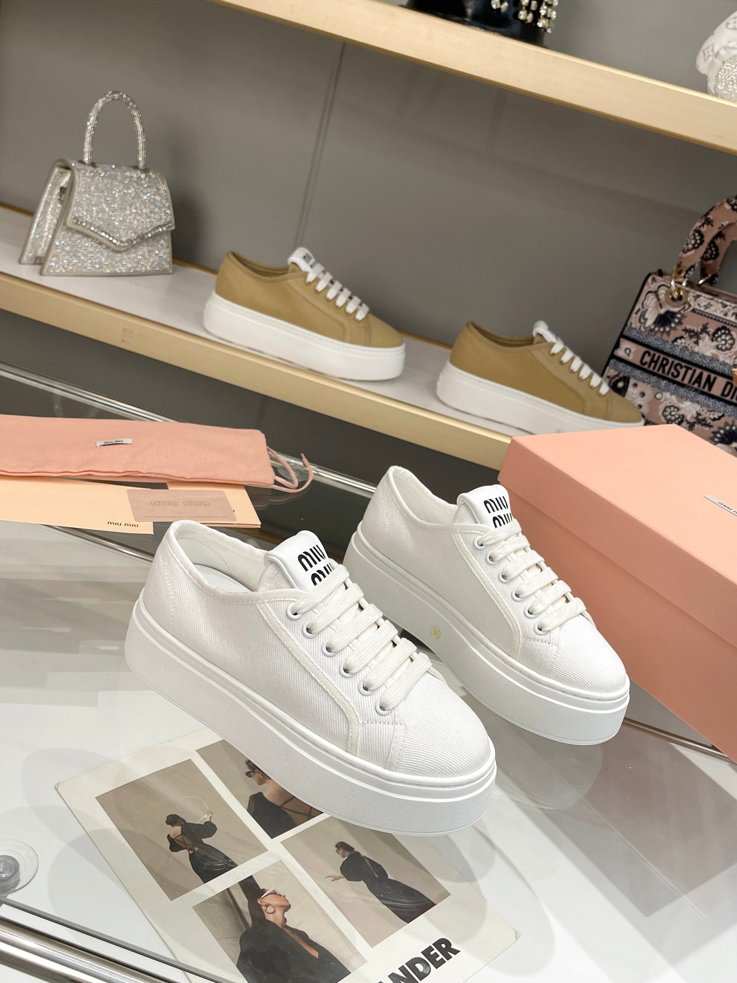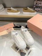 Miu Low Top Skateboard Shoes 50mm White Canvas Cowhide 456836