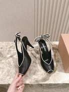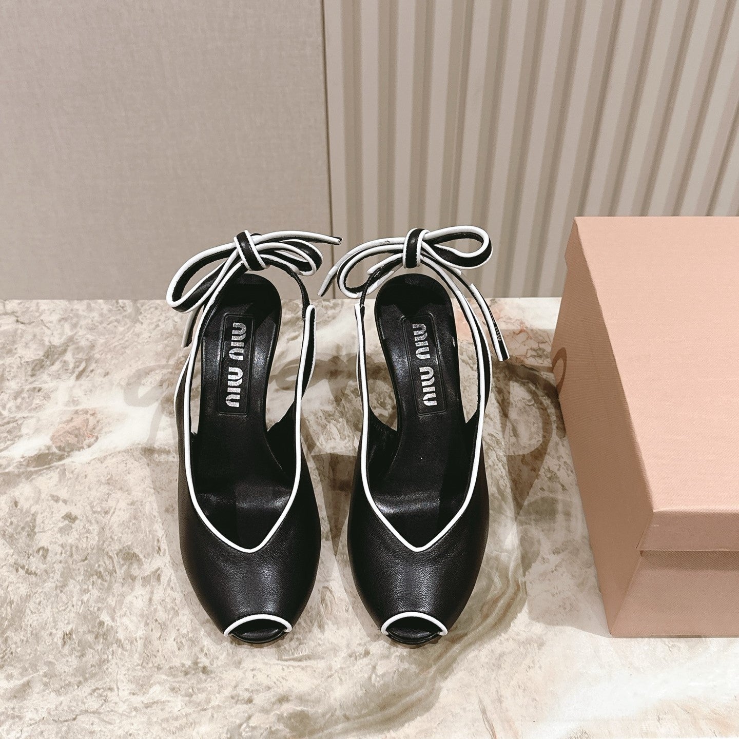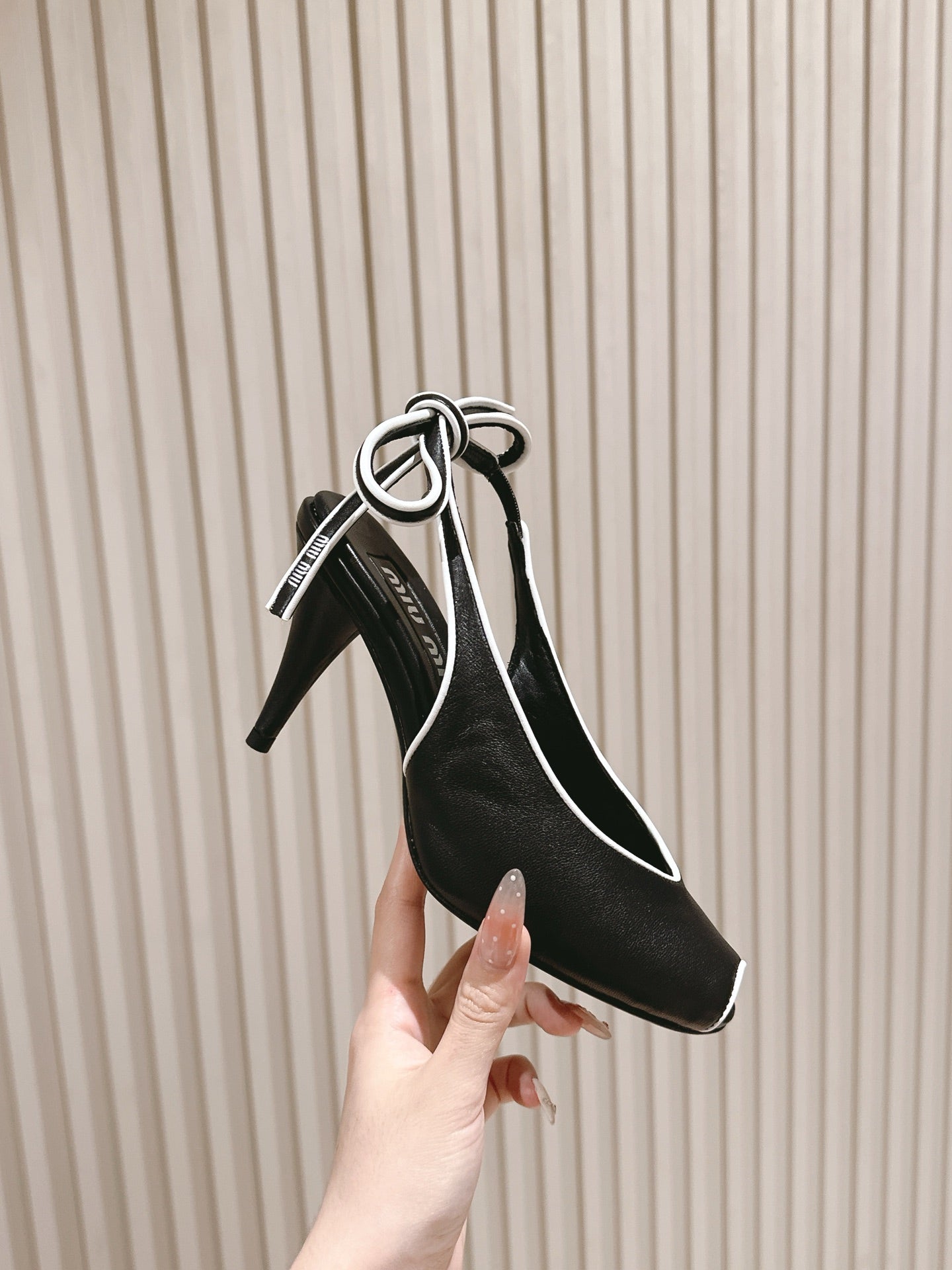 Miu Mordoré Slingback Pumps 85mm Black Cowhide Sheepskin 445793