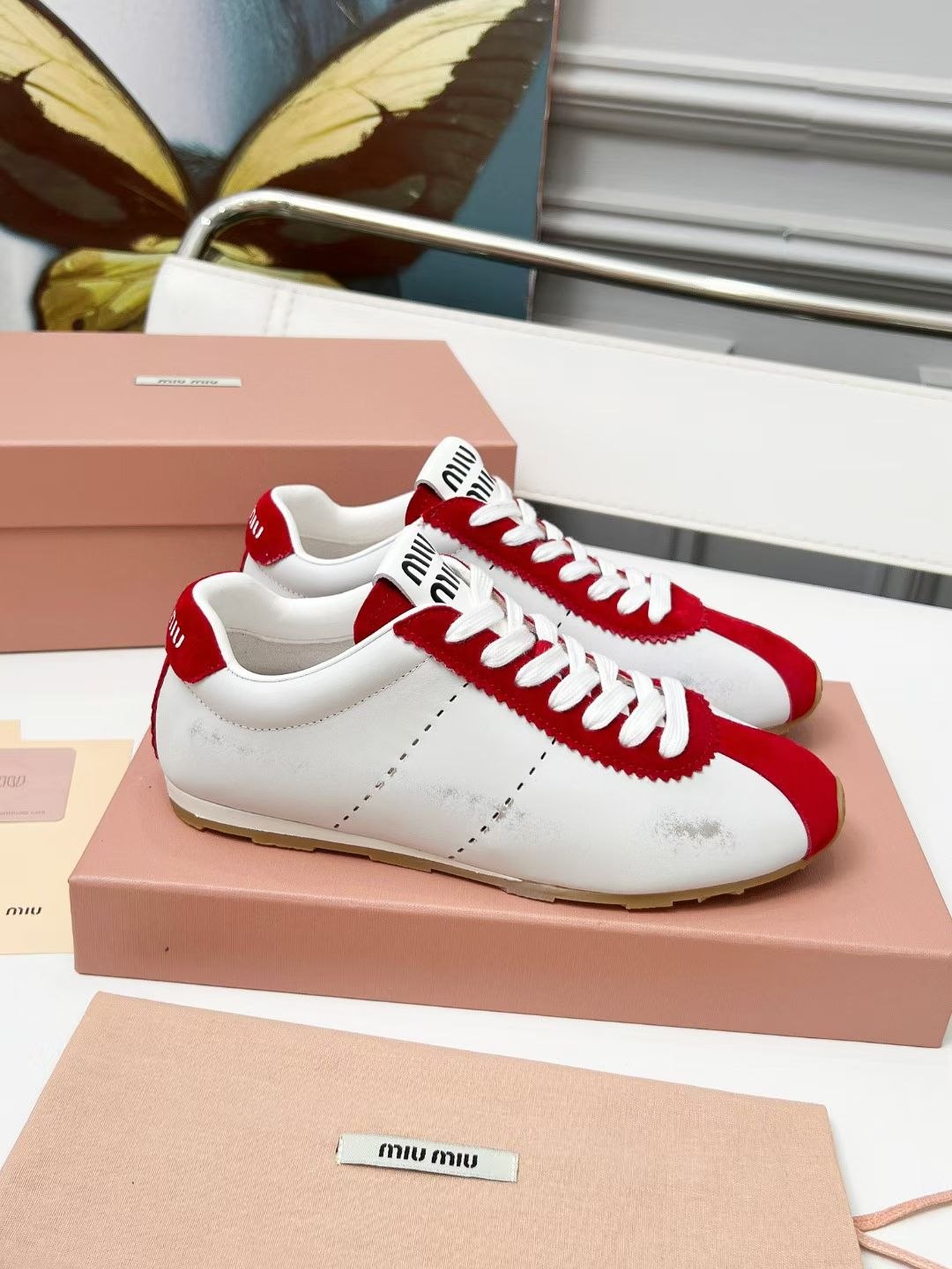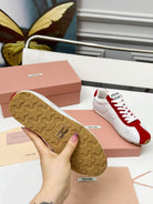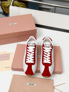 Miu Plume Sneakers Red White Cowhide Suede 456352