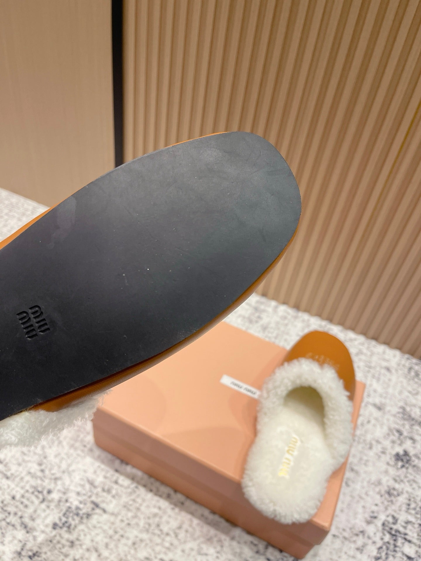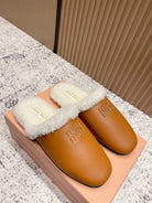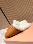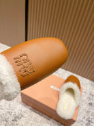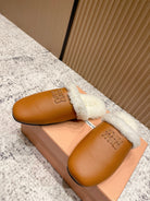 Miu Shearling-Lined Mules Brown Cowhide 481433