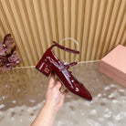 Miu Slingback Pumps With Straps 45mm Deep Red Patent Leather 498173