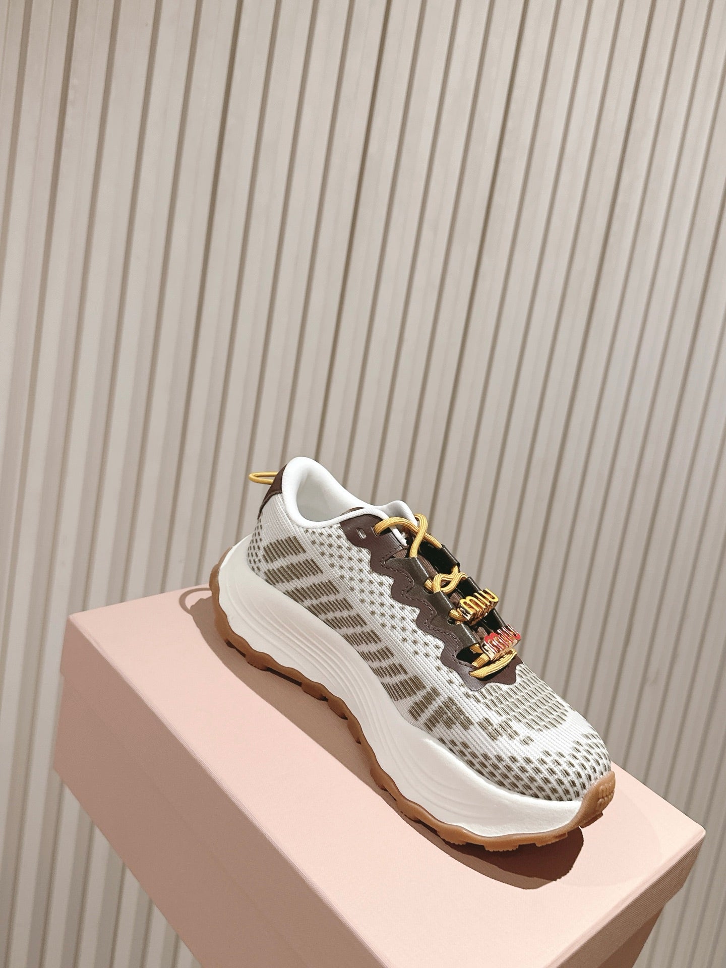 Miu Technical Sneakers White Olive Cowhide Fabric 445811