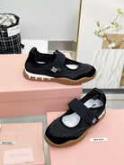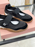 Miu Tyre Ballerina Shoes Black Suede Fabric 456339