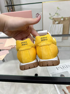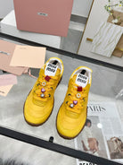 Miu TYRE Sneakers with Decorative Buckle Yellow Suede Technical Fabric 456335