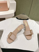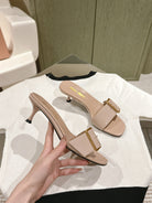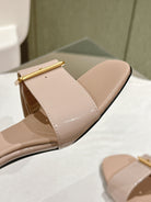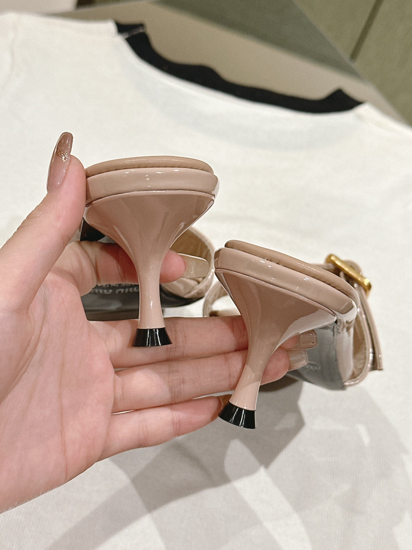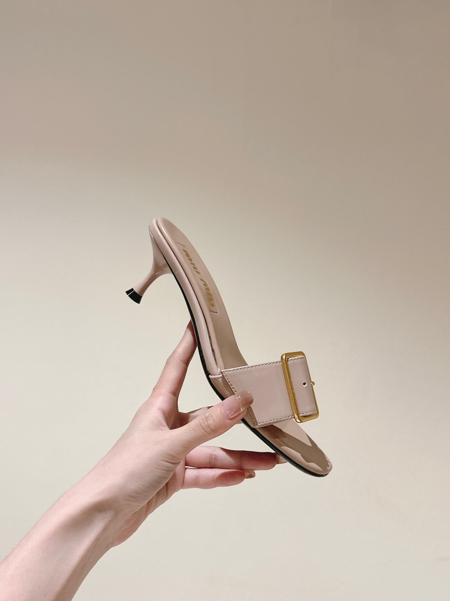 Miu x Balanc Studded Buckle Elegant Mules 45mm Beige Patent Leather 445869