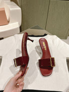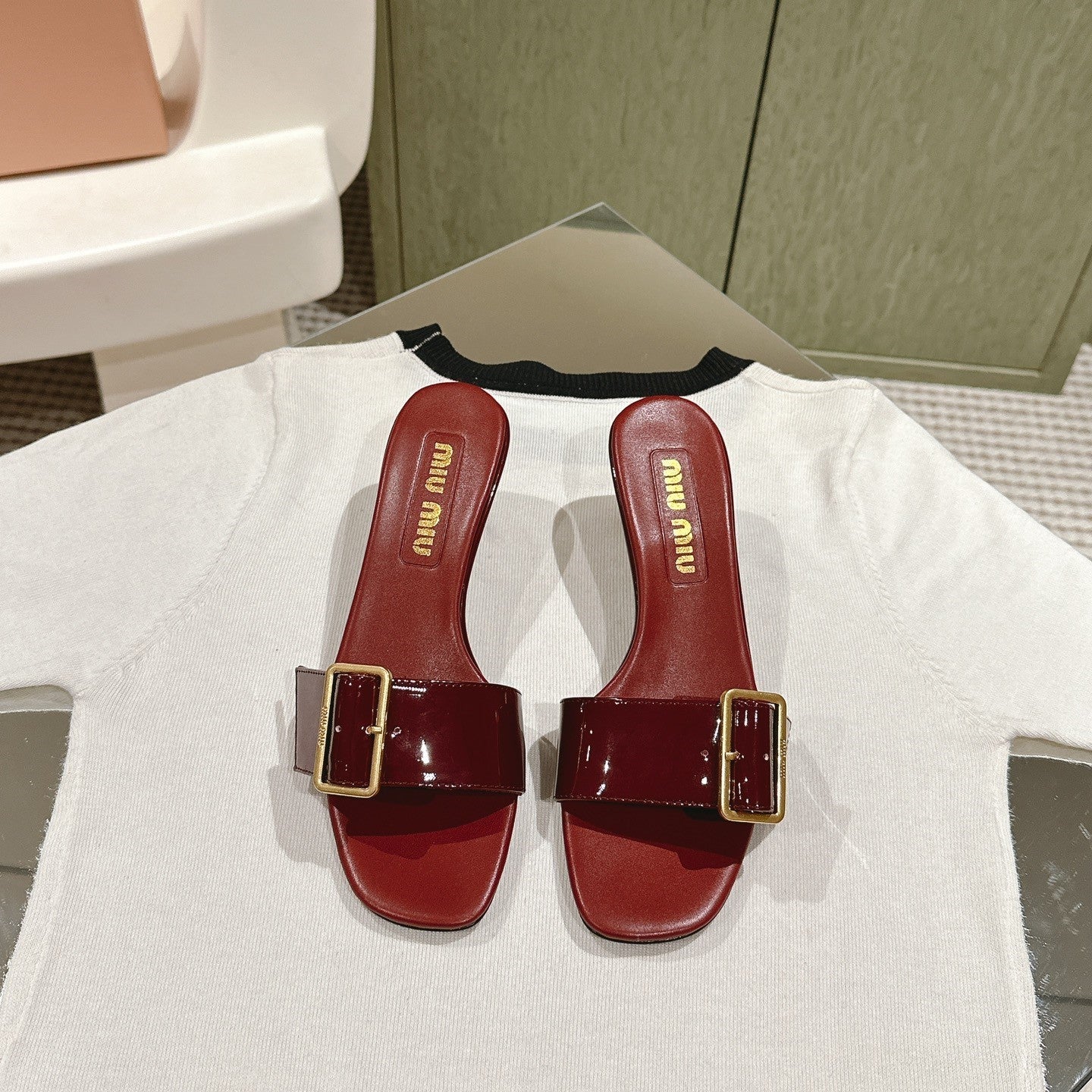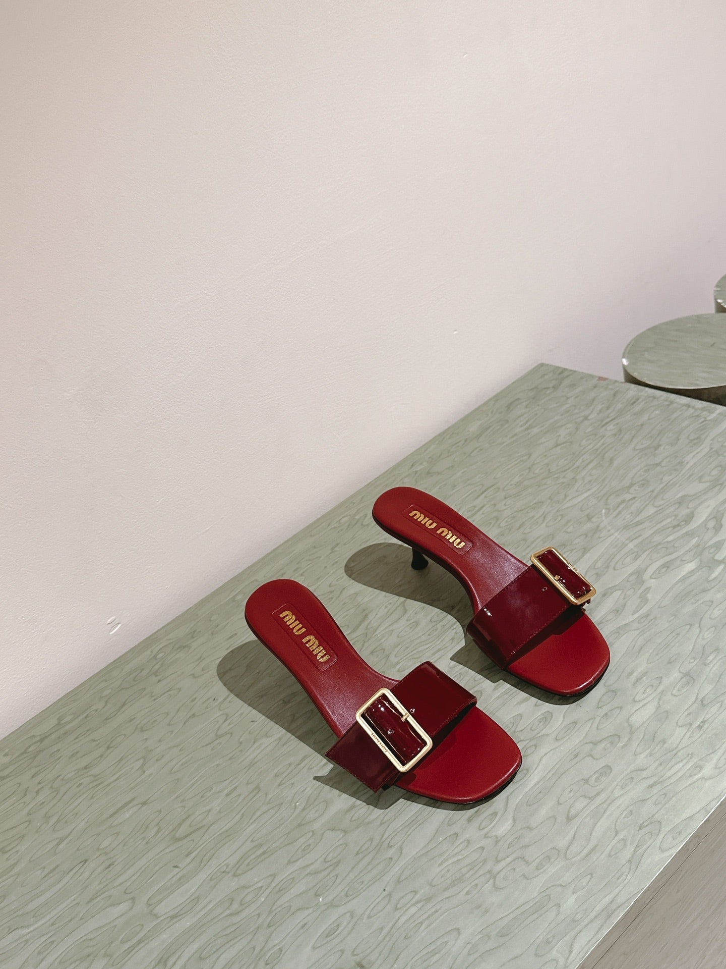 Miu x Balanc Studded Buckle Elegant Mules 45mm Burgundy Patent Leather