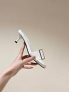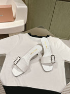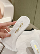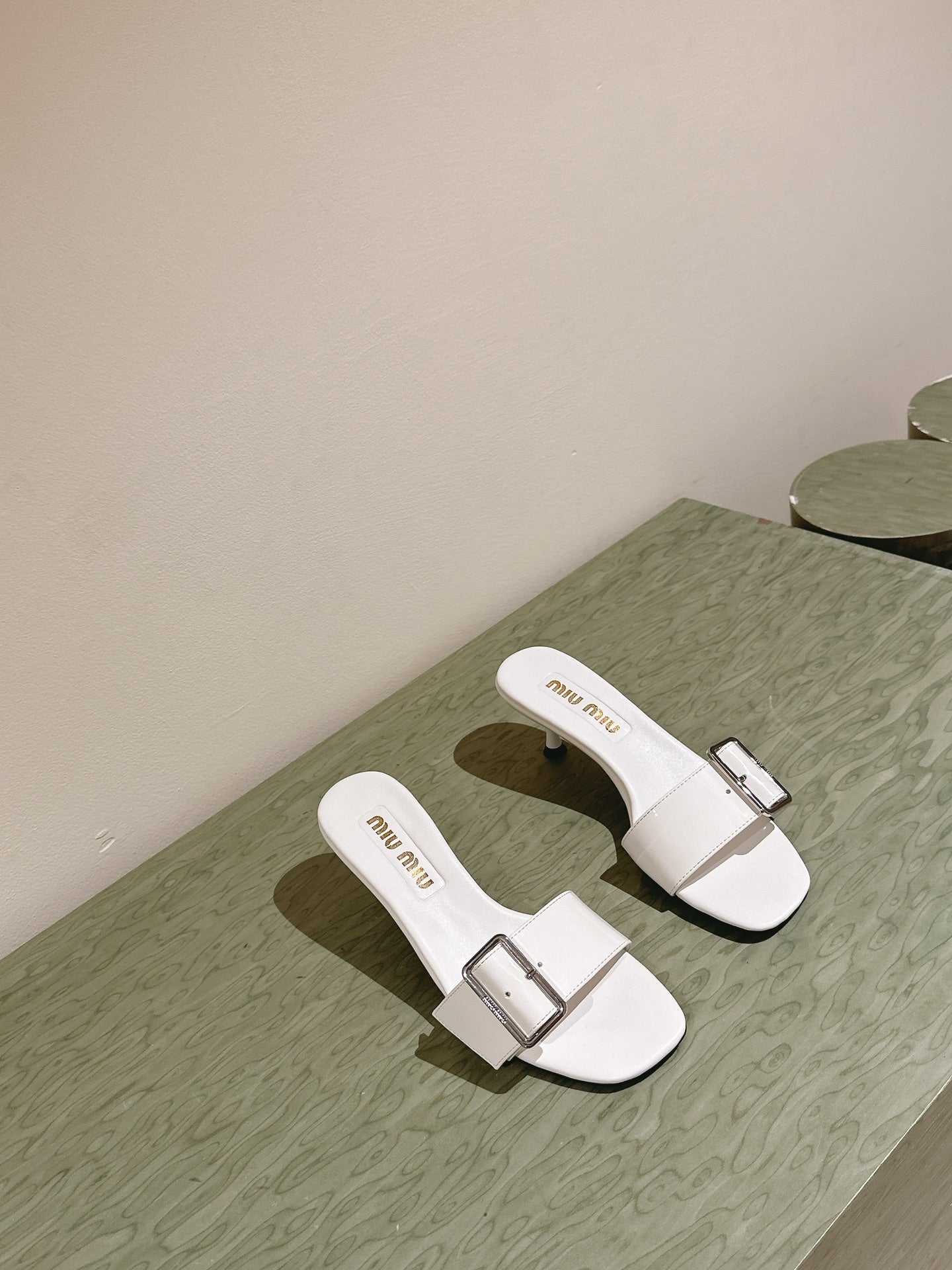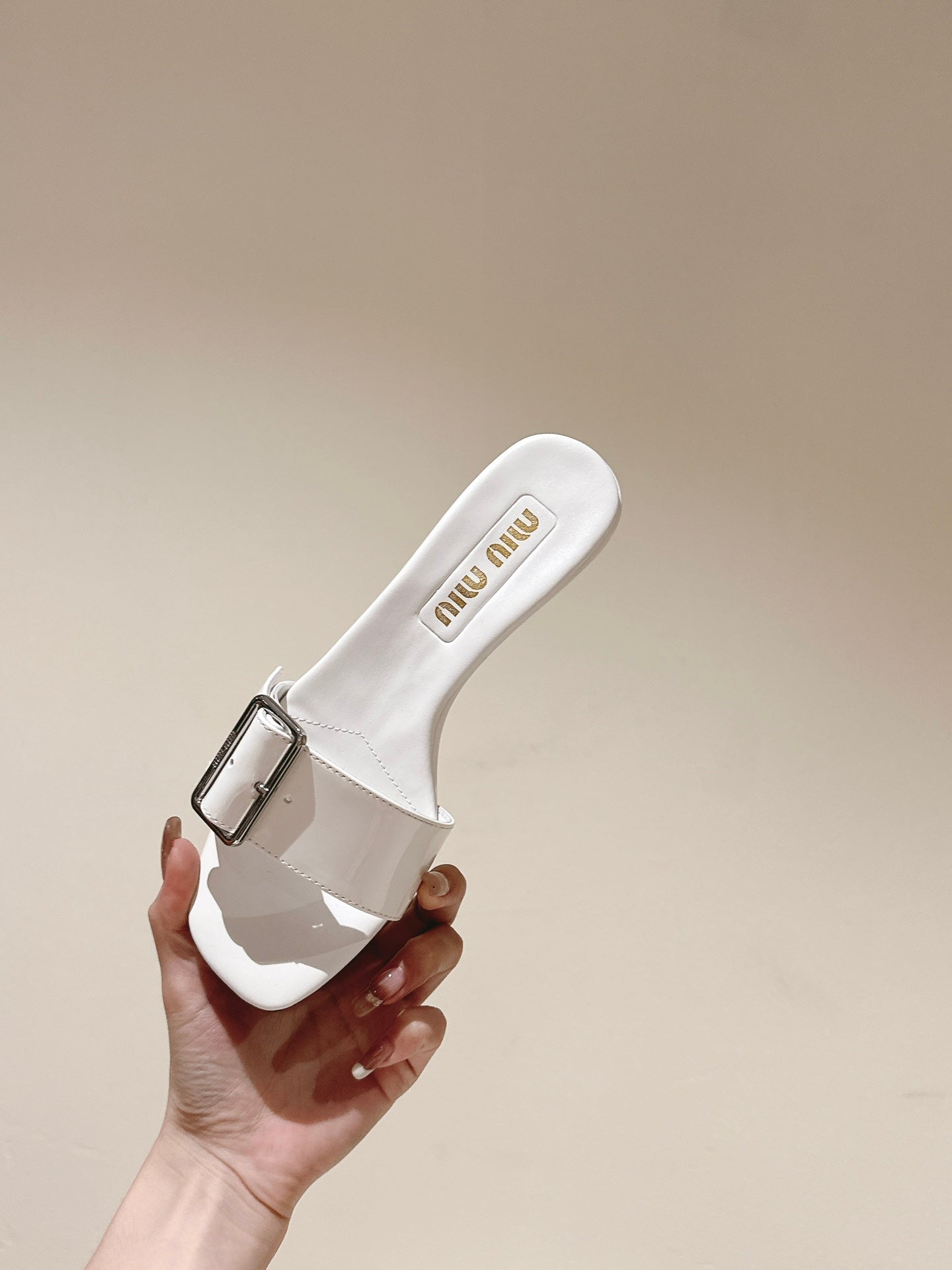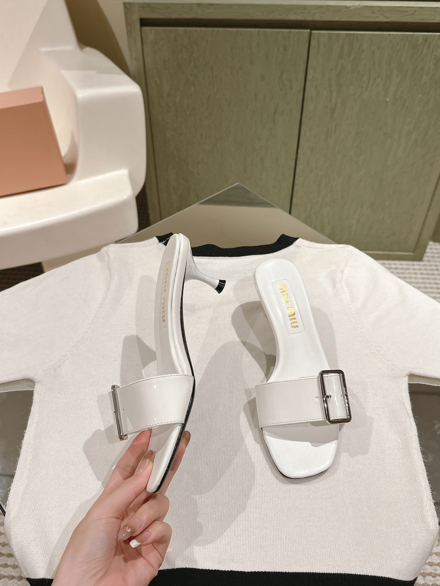 Miu x Balanc Studded Buckle Elegant Mules 45mm White Patent Leather 445871