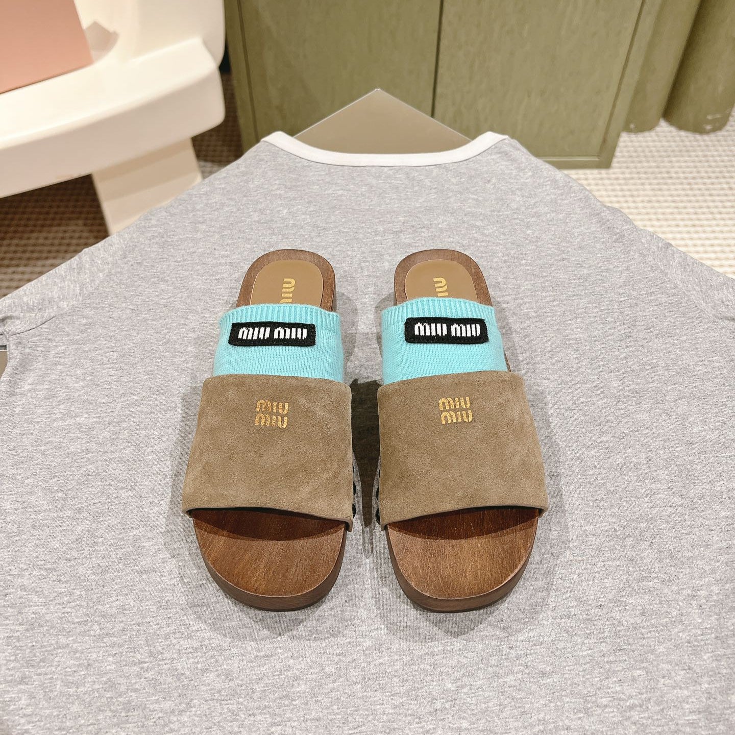 Miu Clogs 30mm Khaki Blue Suede Wood 445656