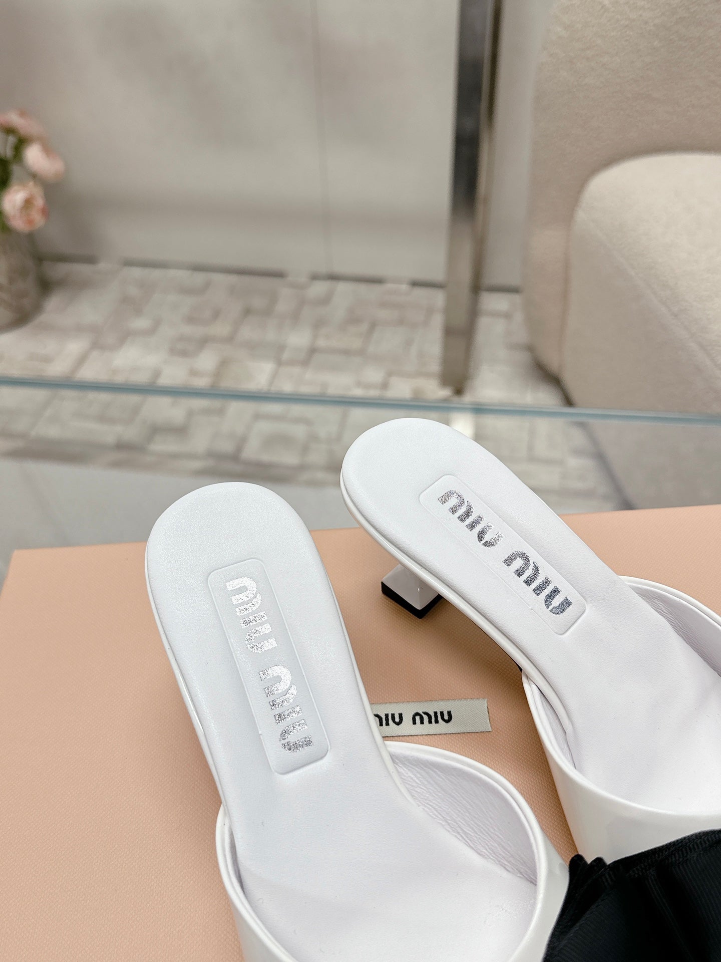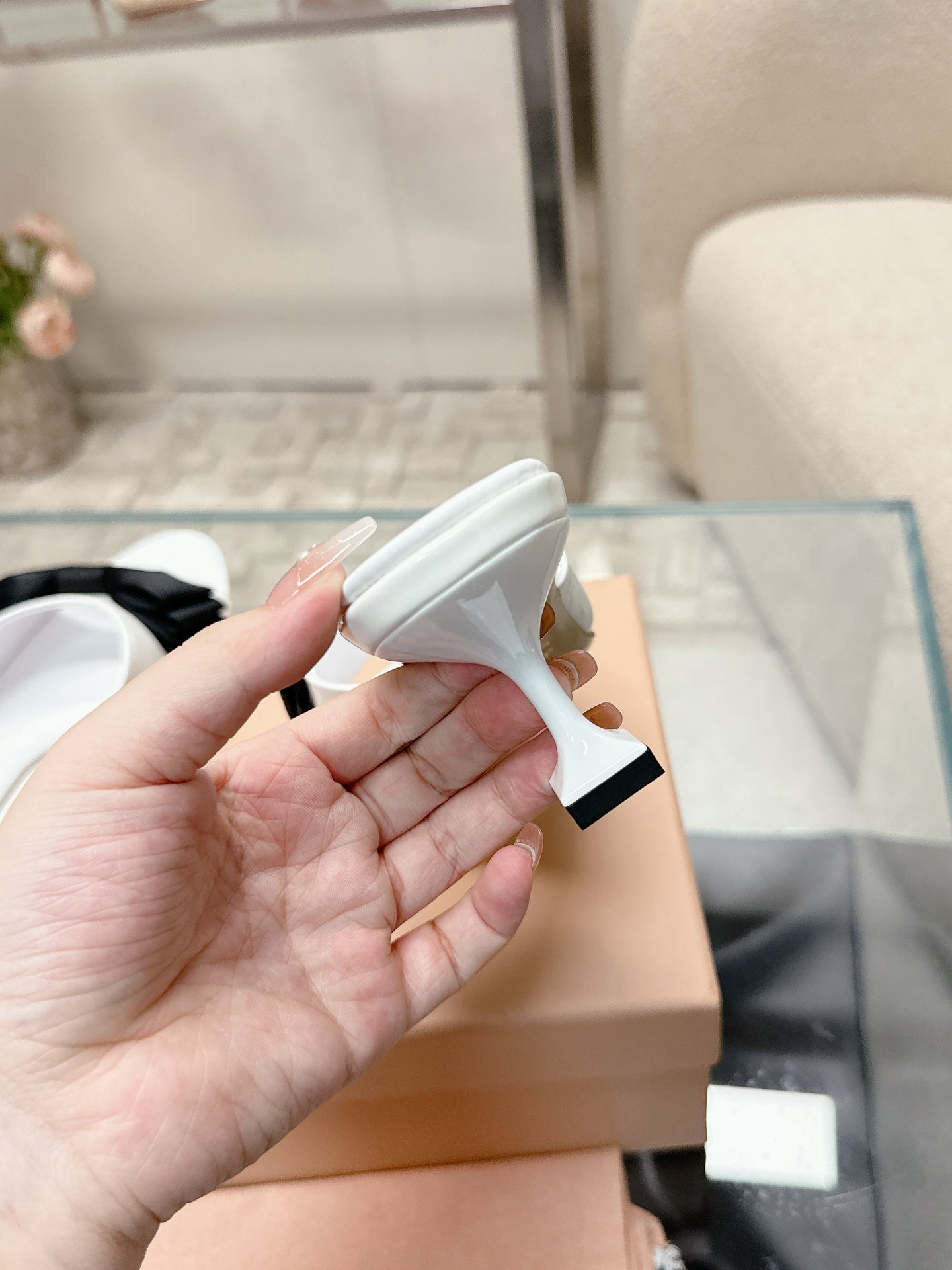 Miu Mordoré Black Bows Mules 50mm White Cowhide 445522
