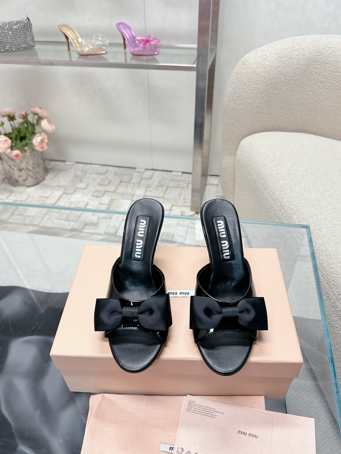 Miu Mordoré Black Bows Mules 70mm Black Cowhide 445512