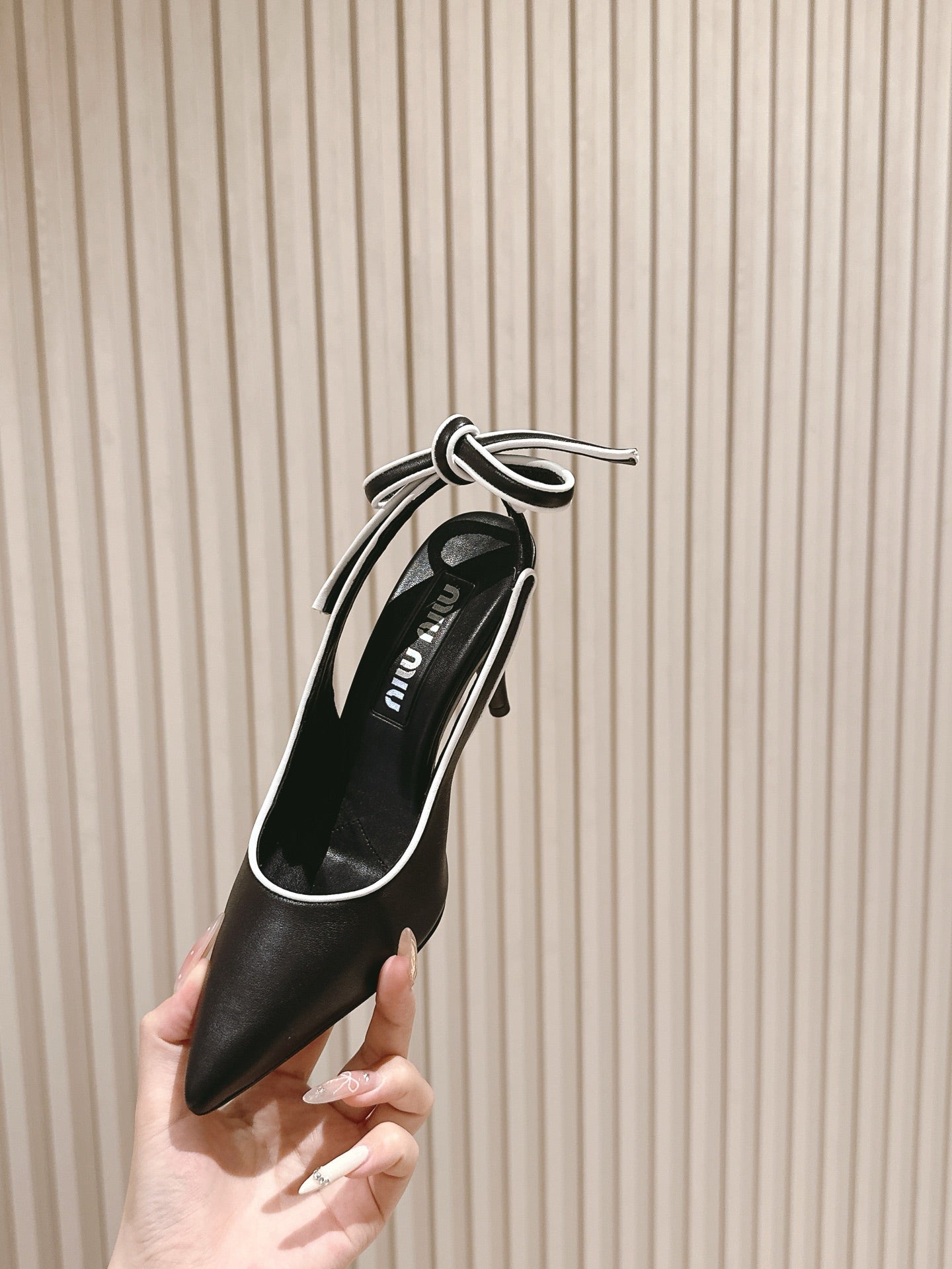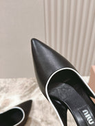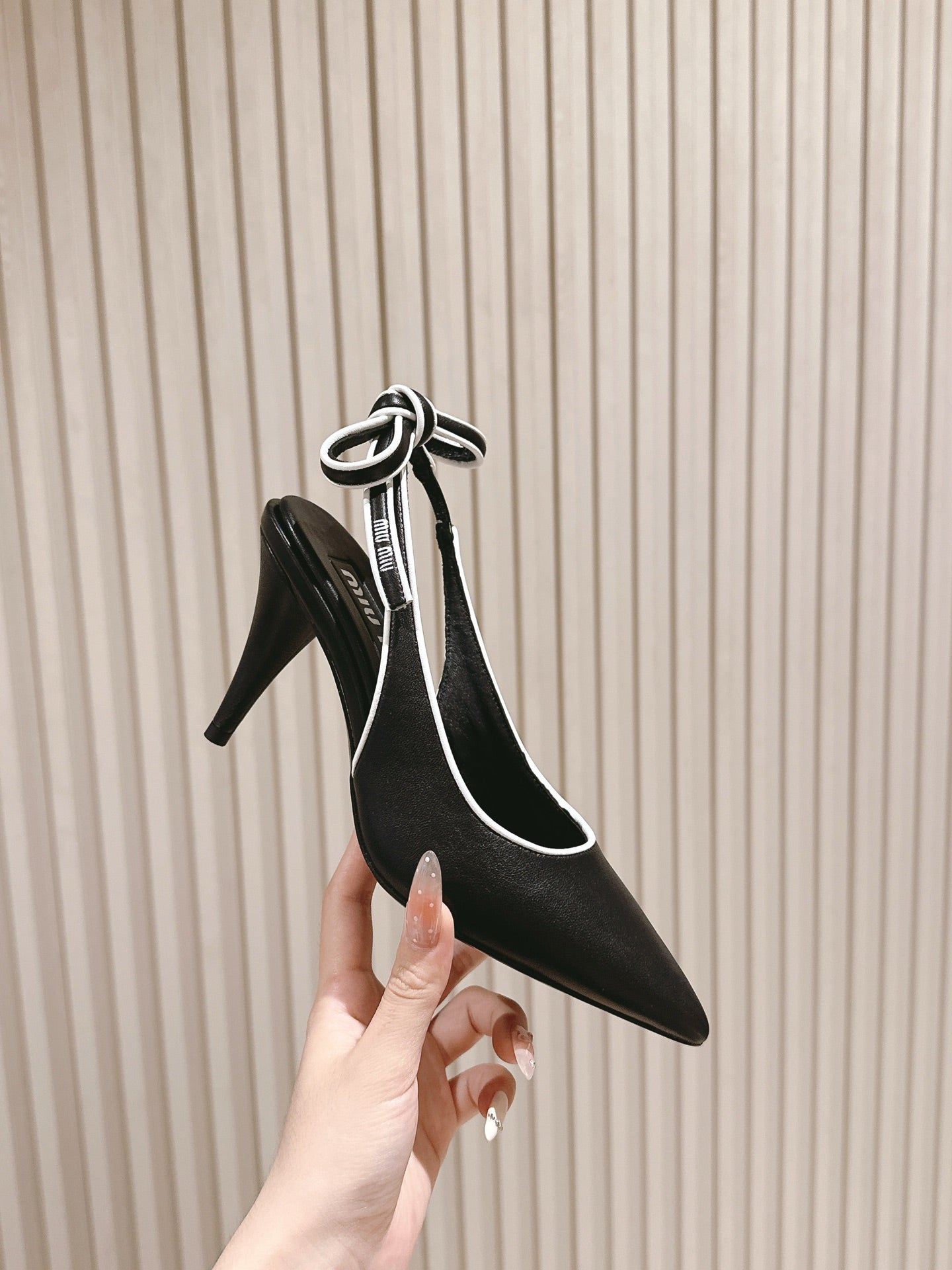 Miu Mordoré Pointed Toe Slingback Pumps 85mm Black Cowhide Sheepskin 445788
