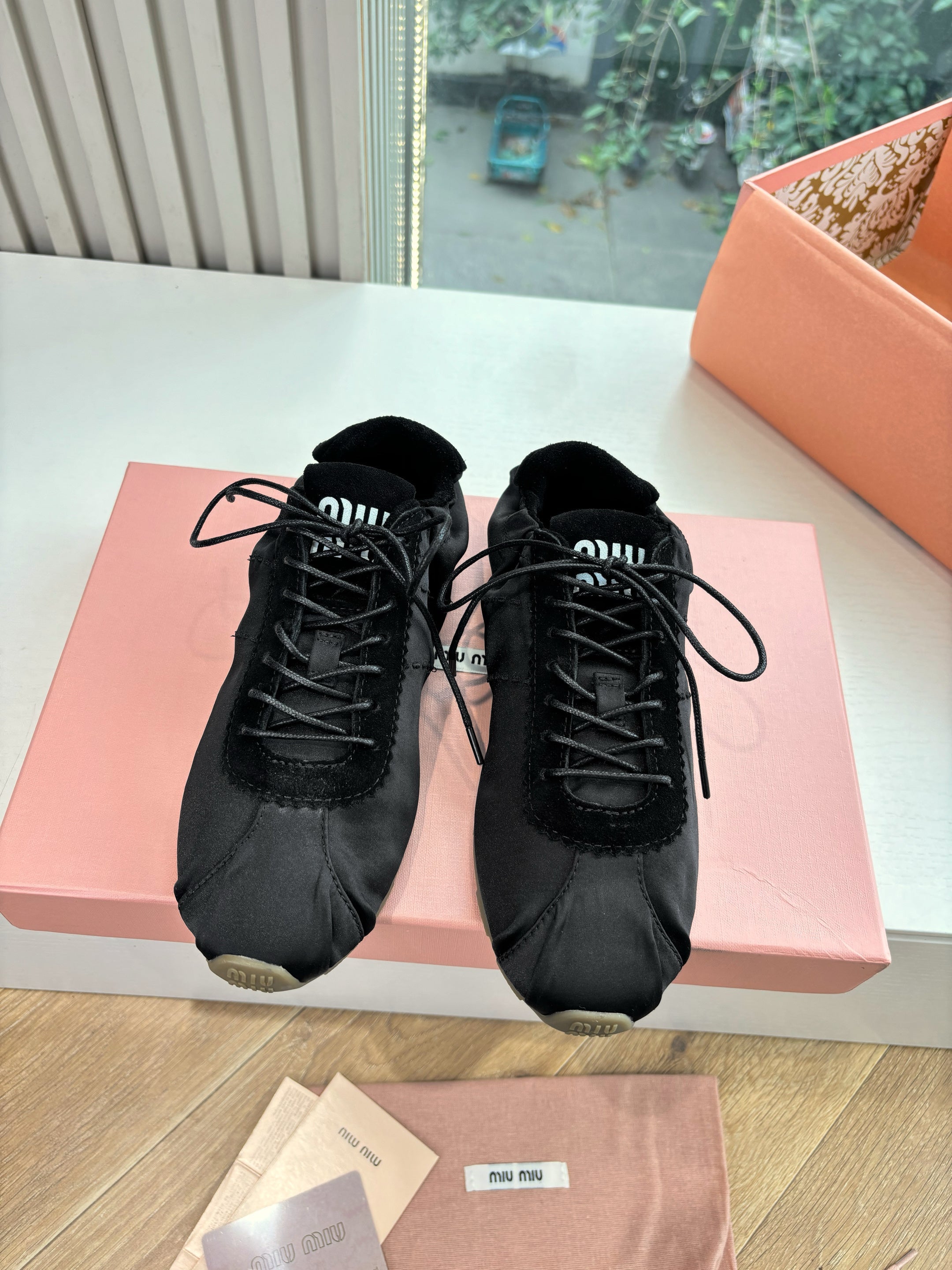 Miu Plume Sneakers Black Satin Suede 549132
