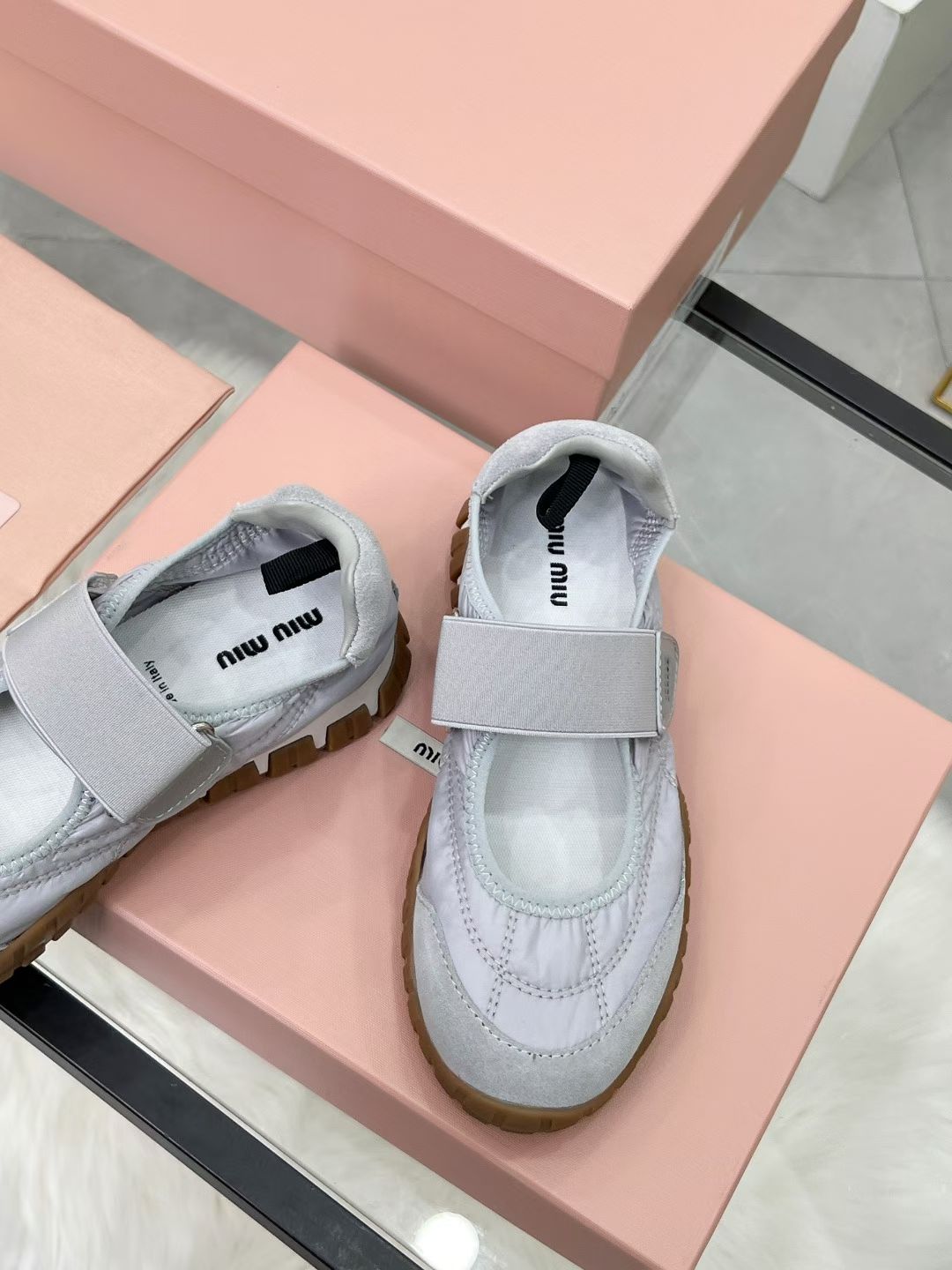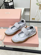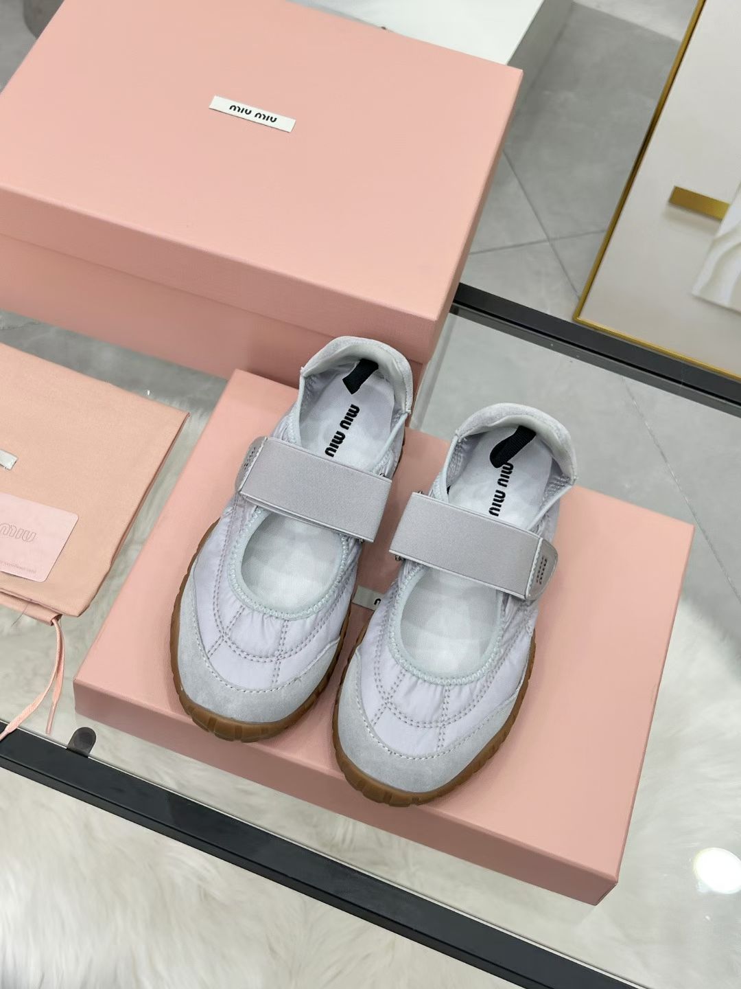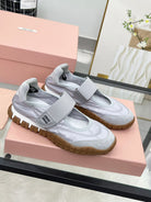 Miu Tyre Ballerina Shoes Grey Suede Fabric 456342