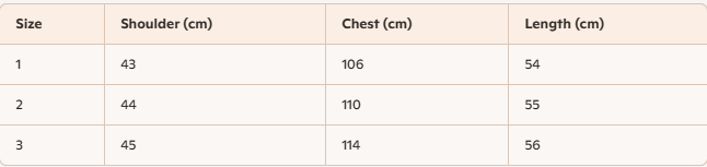- For more information, please see the size guide below