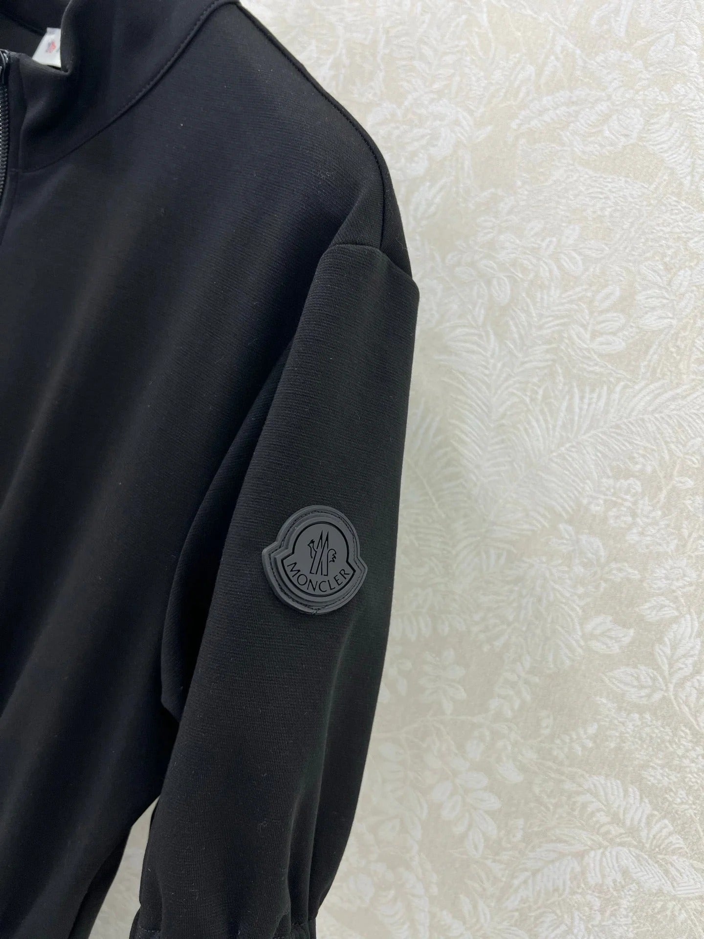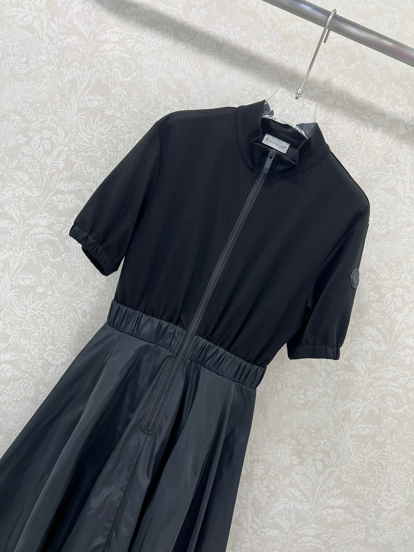 MONCLER SHORT-SLEEVE LONG DRESS WITH STAND COLLAR 275248
