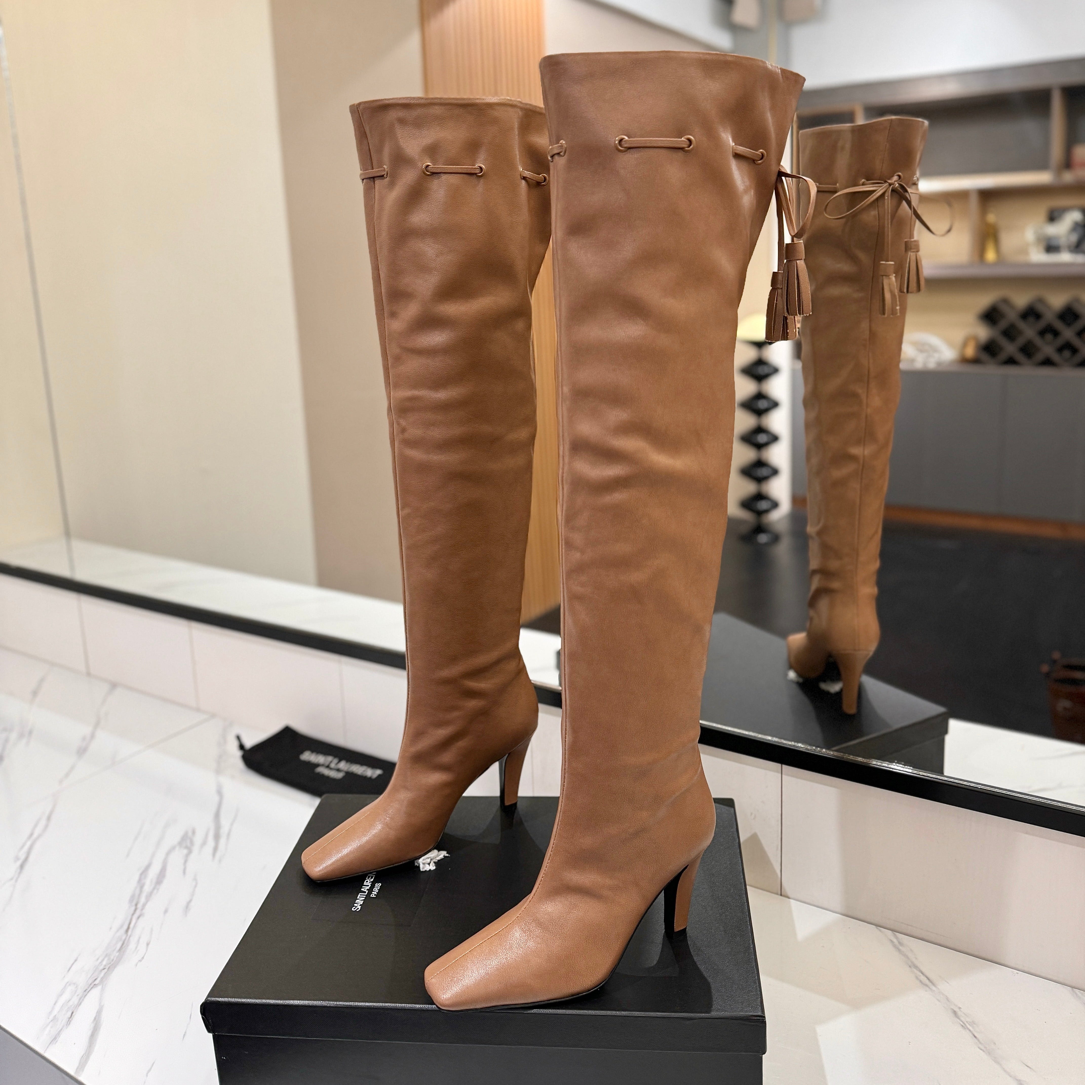 YSL 25 High-heeled Boot Light Brown Cowhide 520774