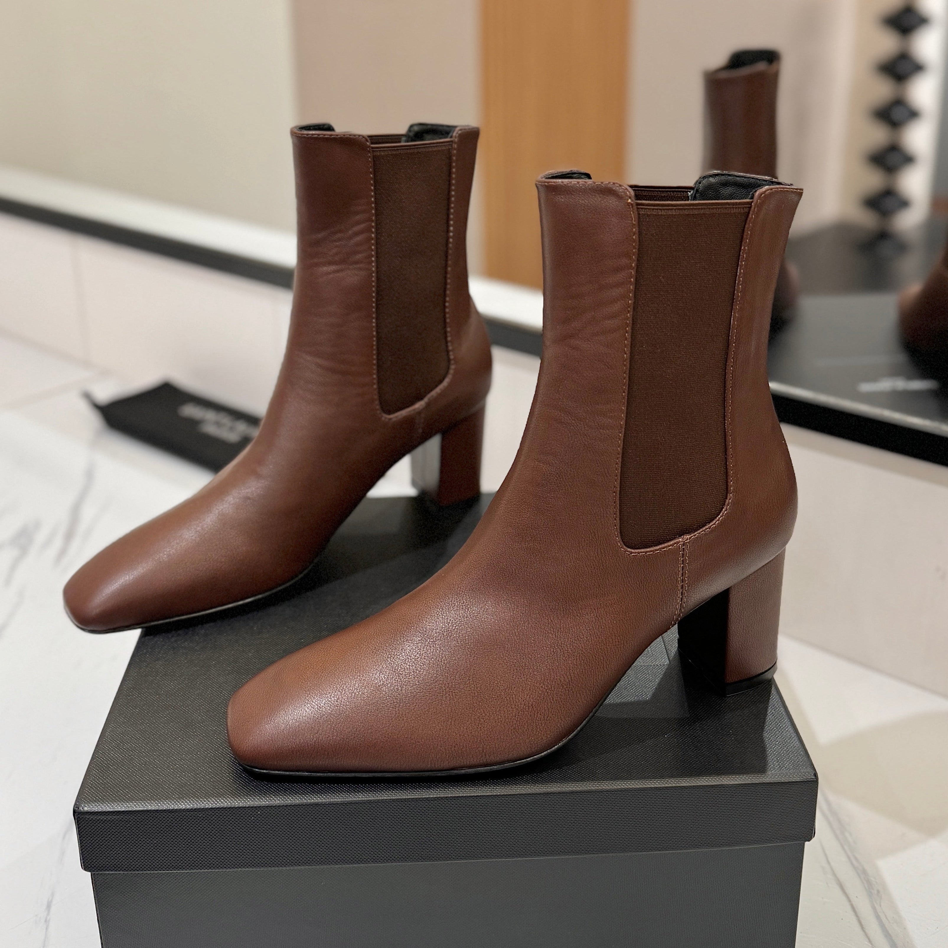 YSL 25 Chelsea Mid-heeled Boot Brown Calfskin 520777