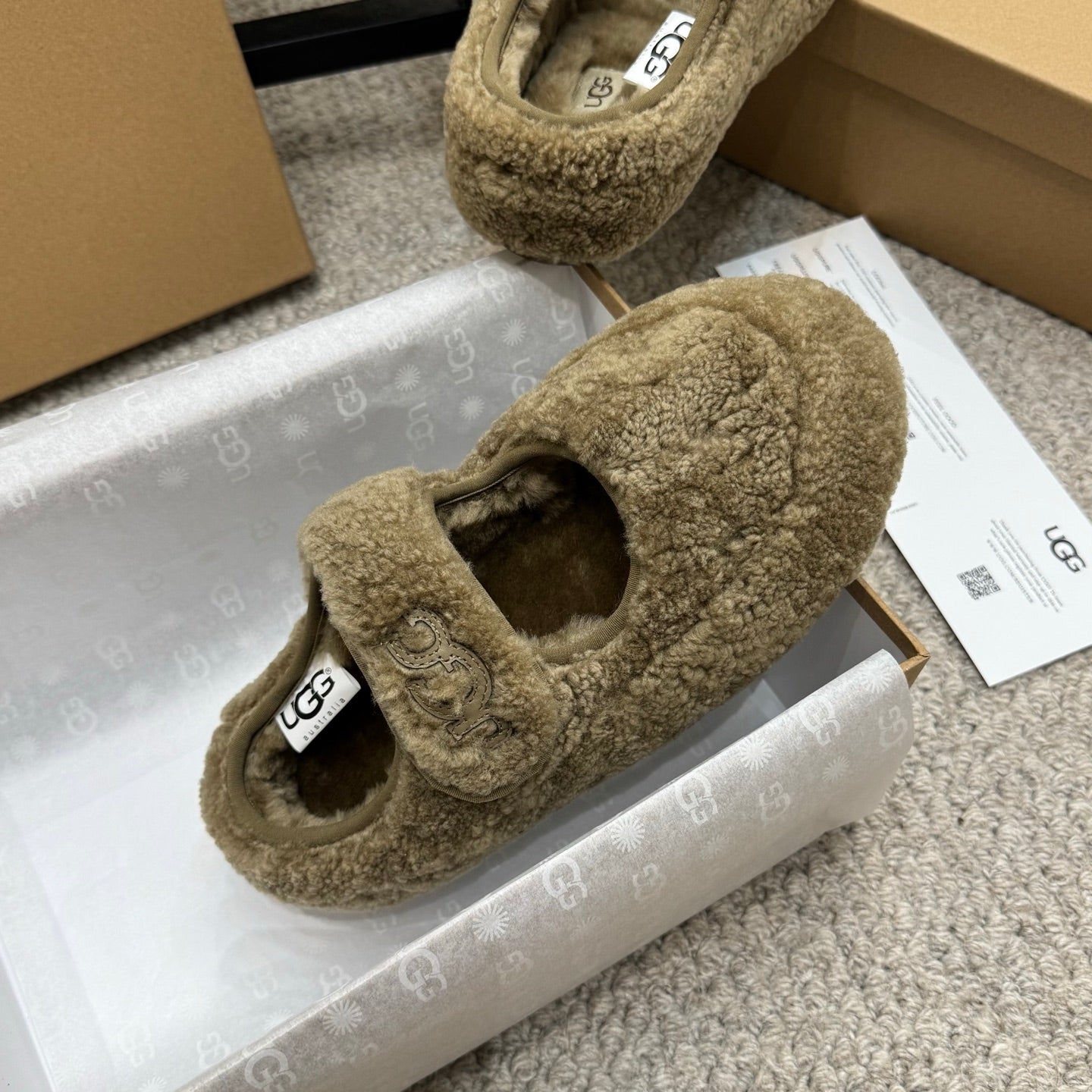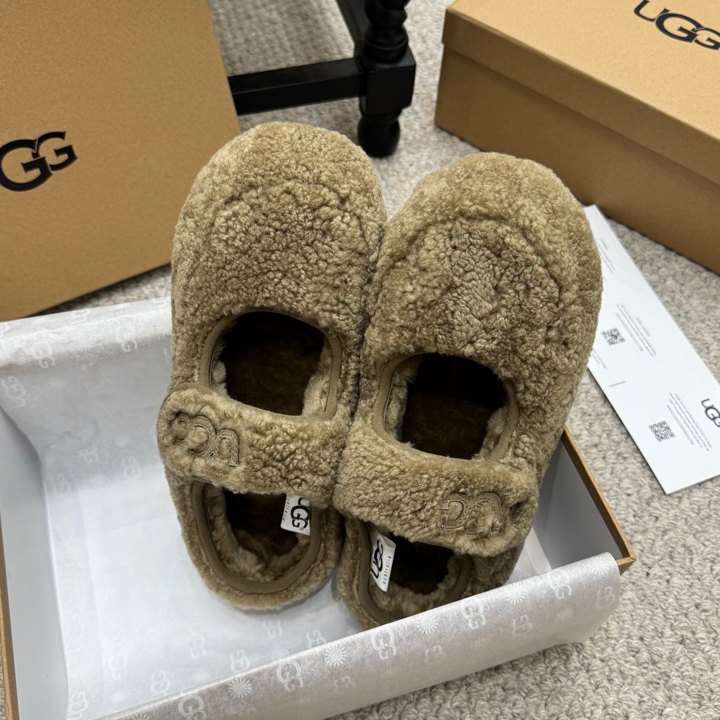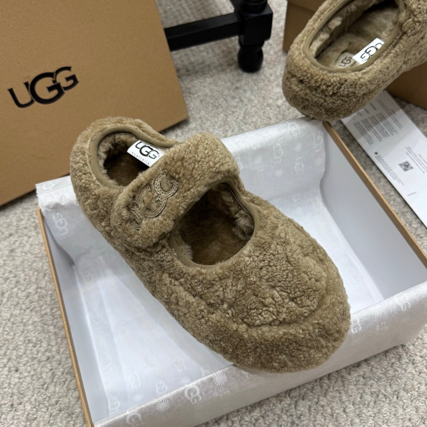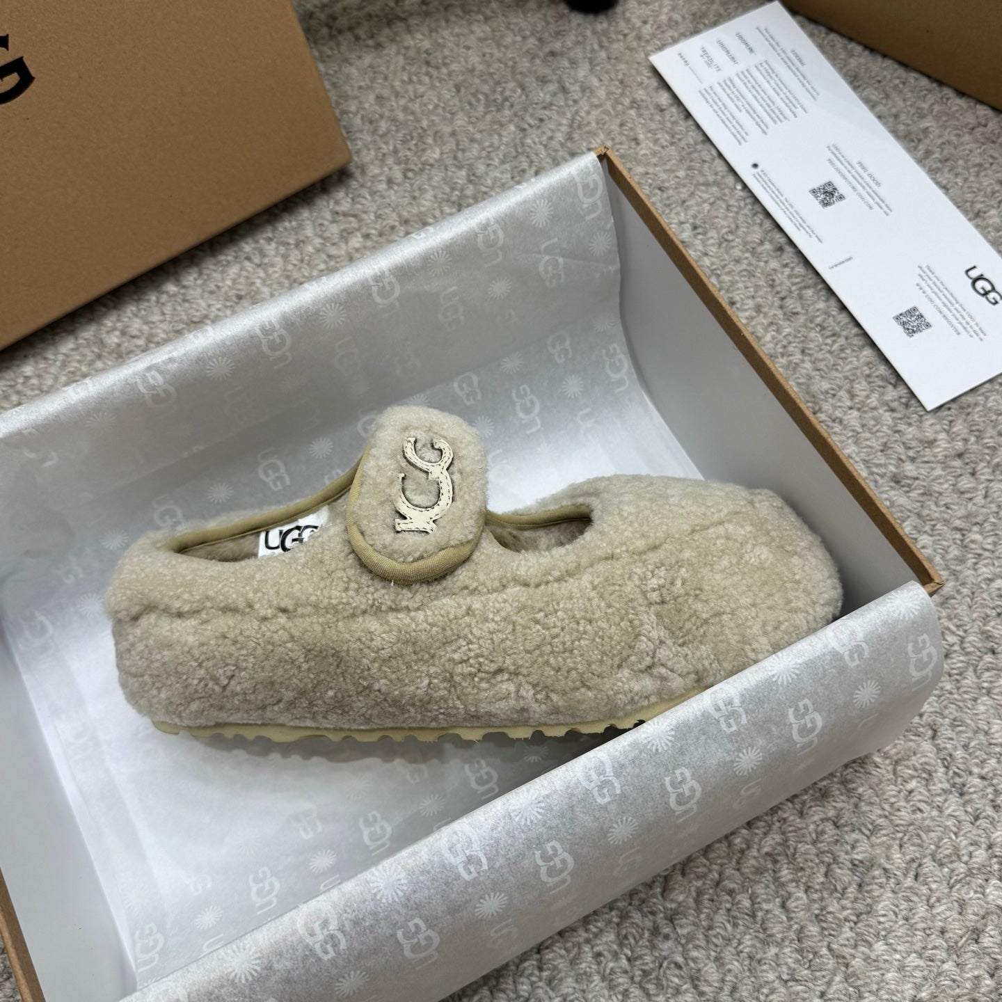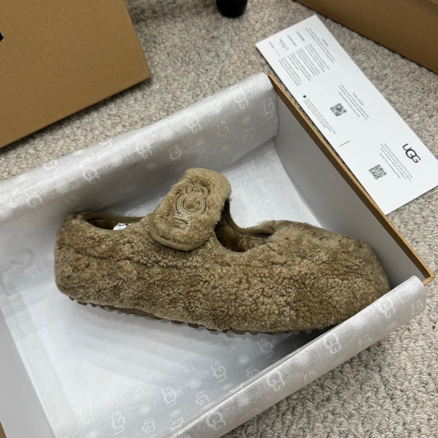 UGG Logo Mary Jane Flat Khaki Brown Wool 523101