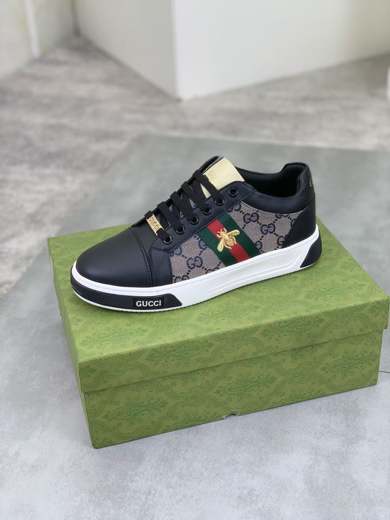 GG 25 Men's ACE Sneaker Black Sheepskin Canvas