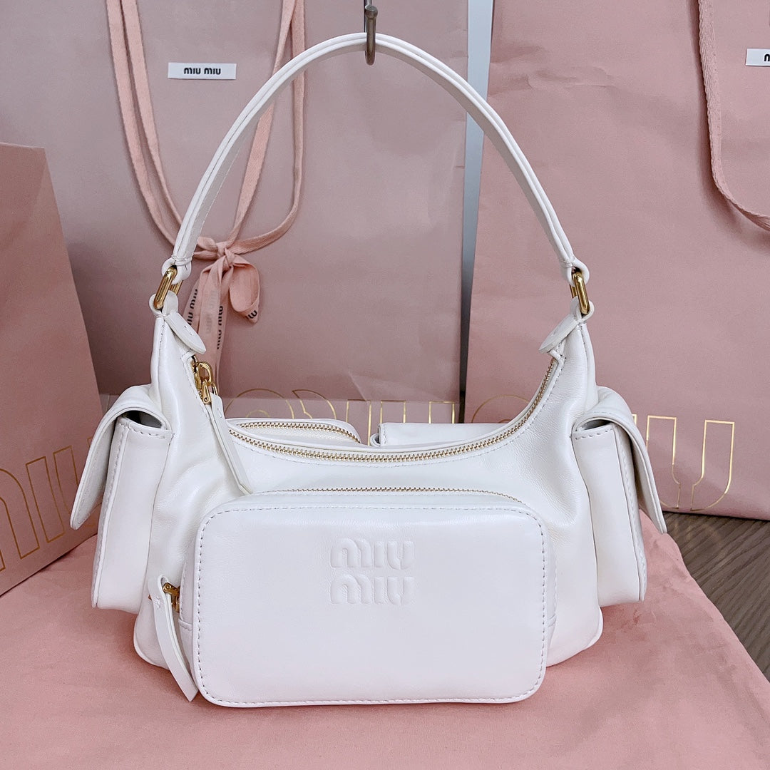 MIU POCKET 21CM SHOULDER BAG WHITE CALFSKIN
