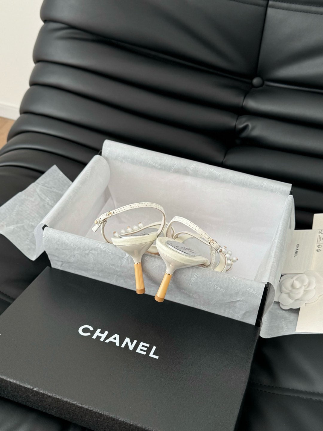 PEARL SANDAL IN WHITE LAMBSKIN 75 MM