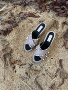 Rockstud Crisscross Espadrilles 80mm Sandal Wedges Black Purple