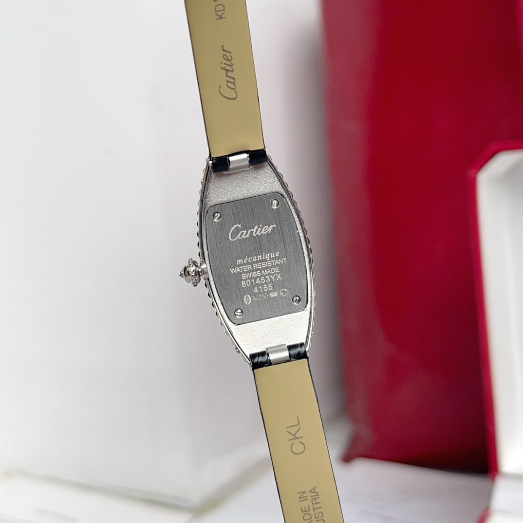 Vintage Baignoire 21mm Silver Diamond Case Black Leather