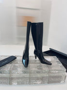YSL 25 High Heeled Long Boot Black Cowhide 522263