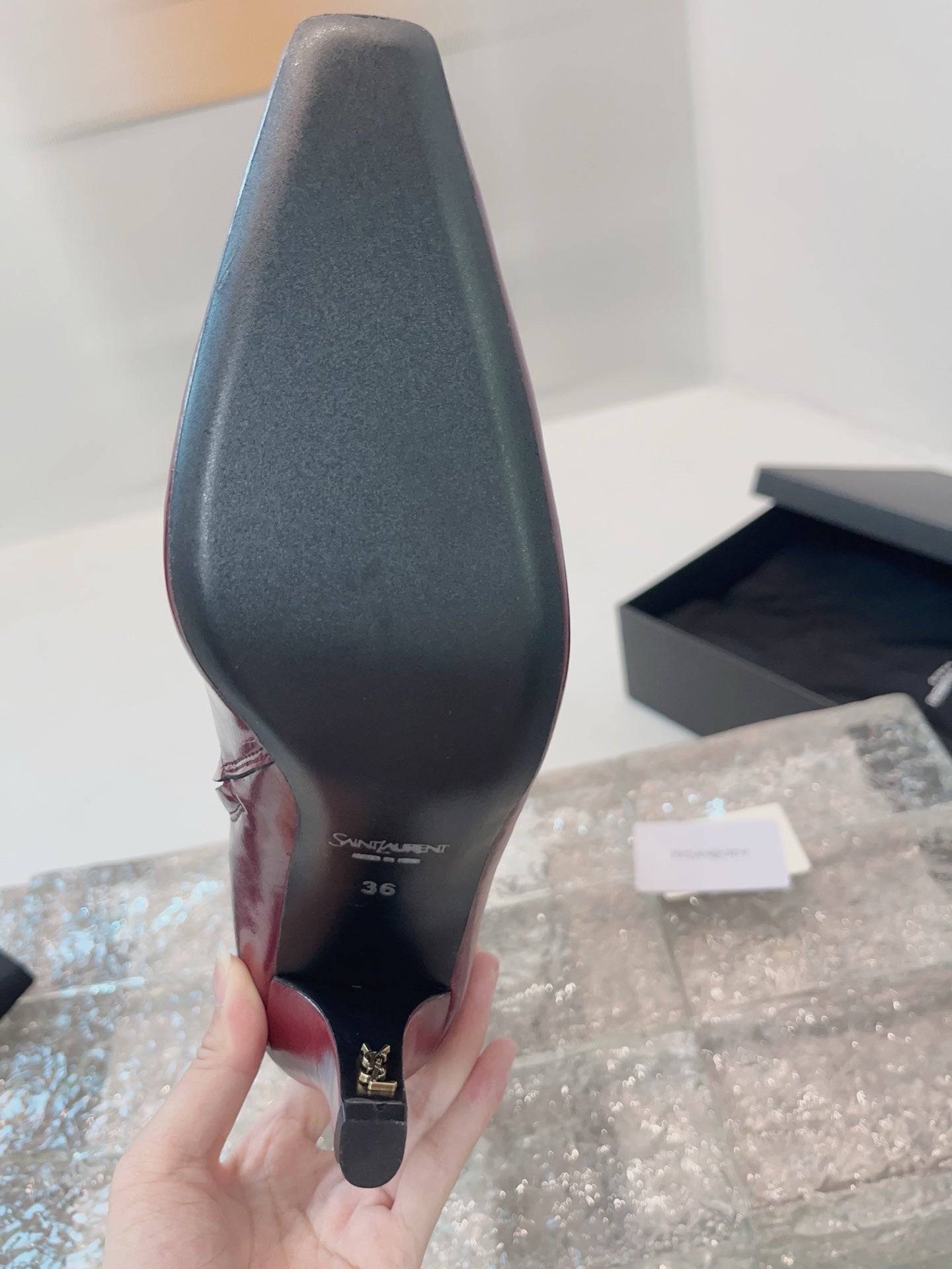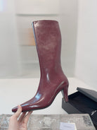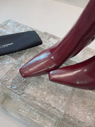 YSL 25 High Heeled Long Boot Burgundy Cowhide 522262