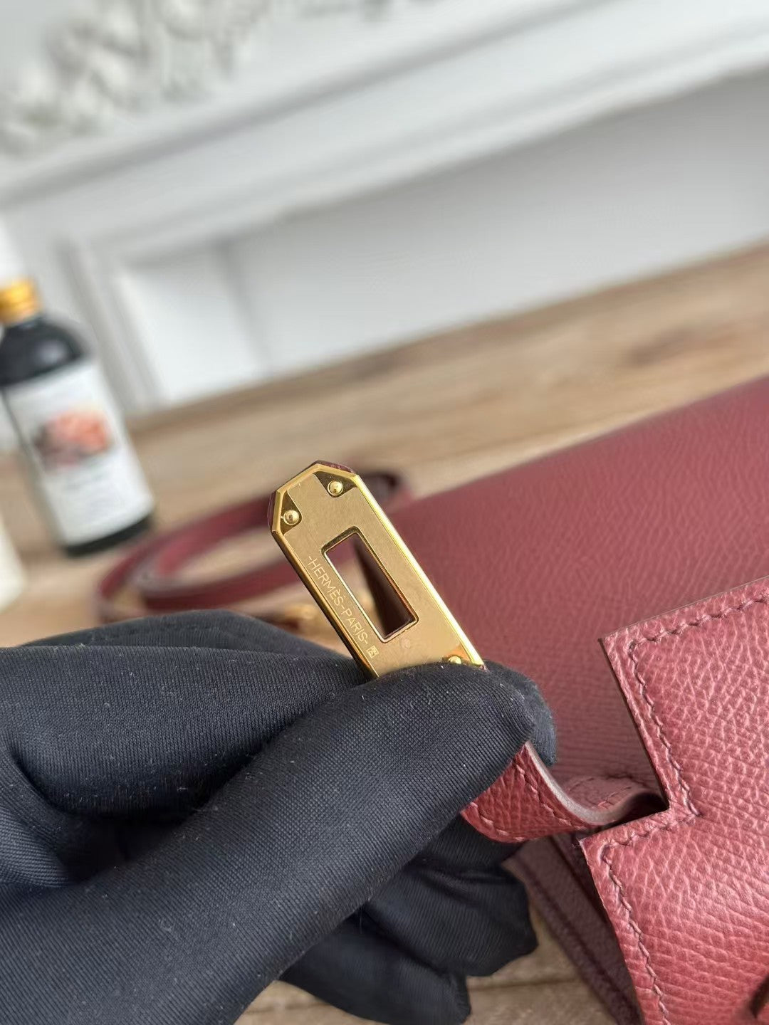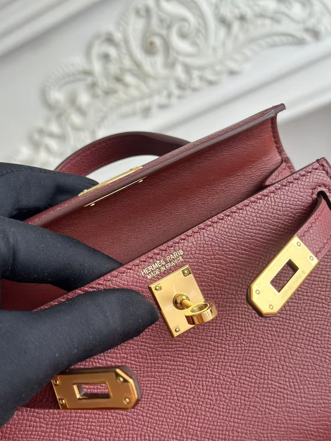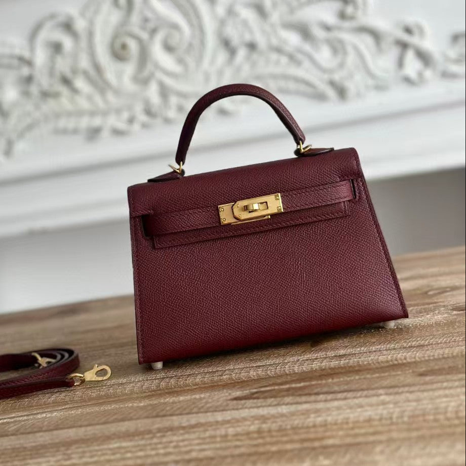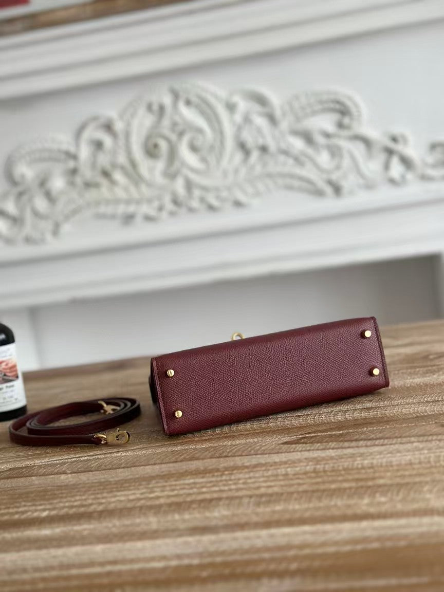 HM Mini Kelly 19cm Burgundy Epsom Gold Hardware