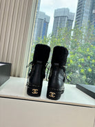 CC 2025 Short Boot Black Cowhide Wool 548840