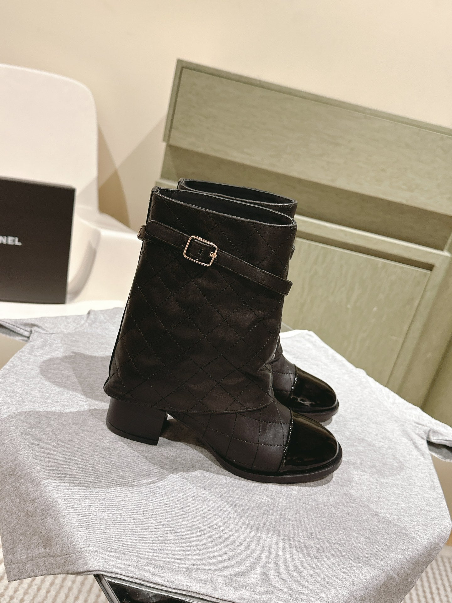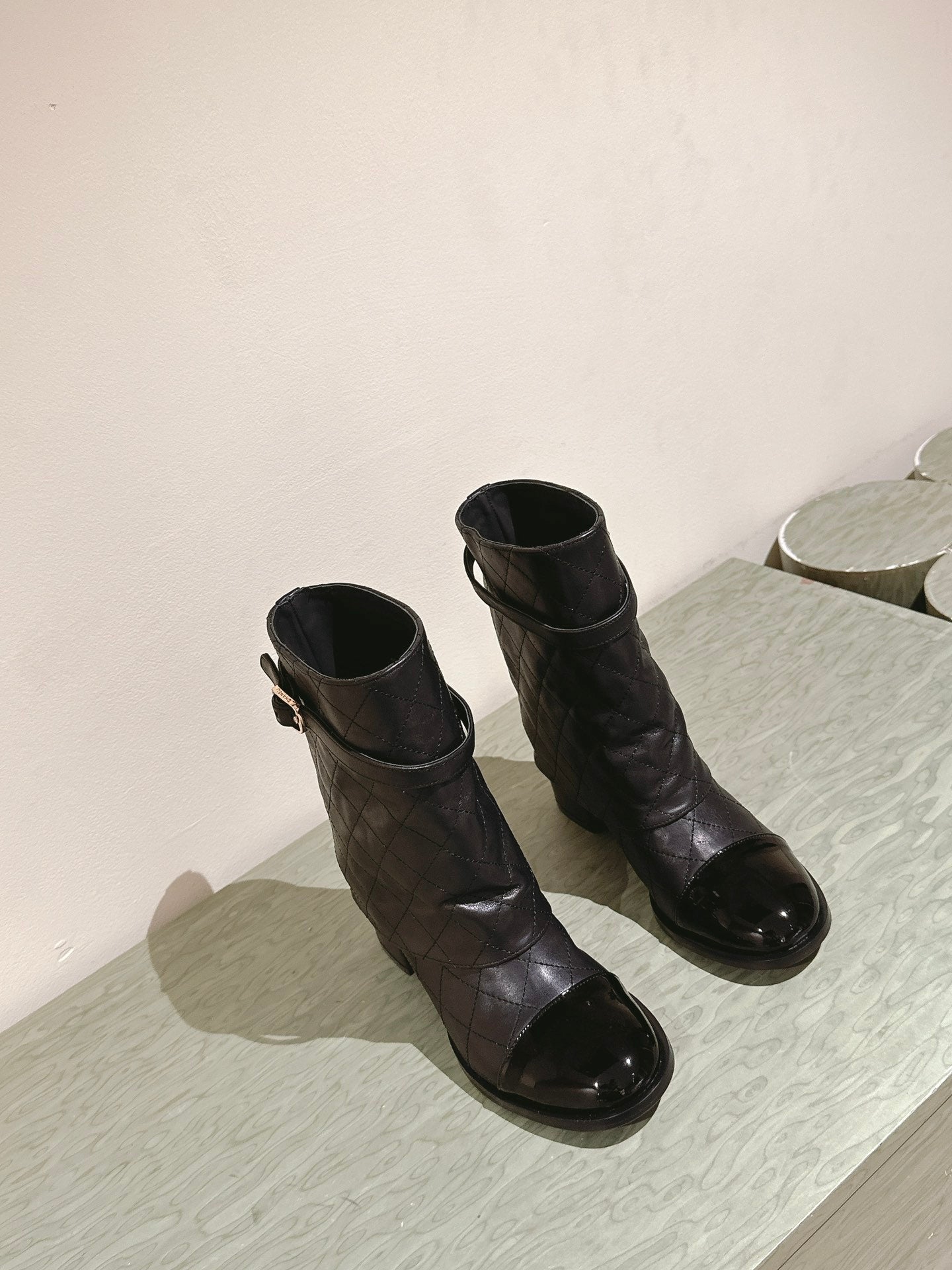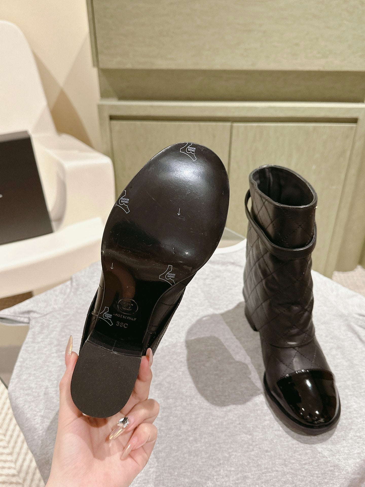 CC 24ss Fold-Over Low Boots 40mm Black Quilted Sheepskin 447478
