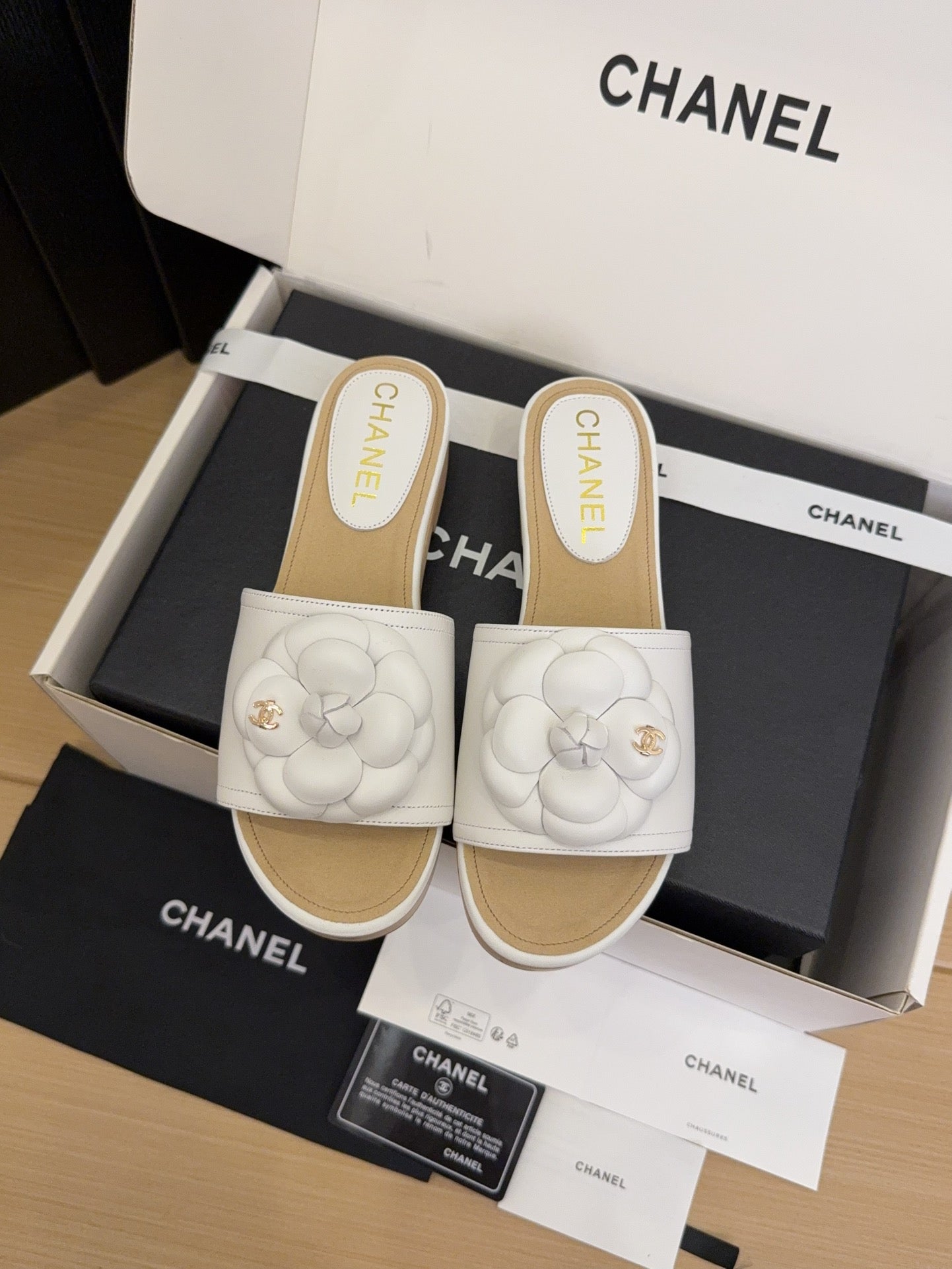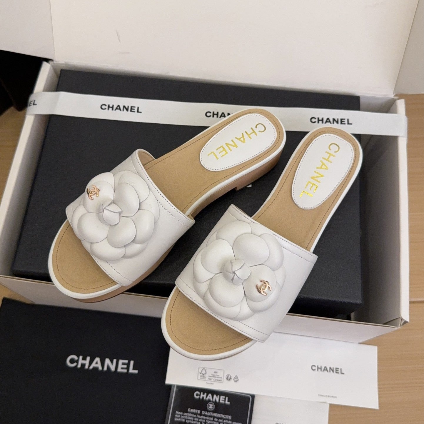 CC 25 Camellia Mule 40 White Beige Leather 277716
