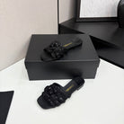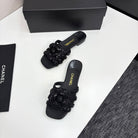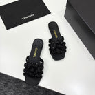 CC 25 Camellia Open Flat Mule Black Coarse Glitter Fabric And Sheepskin 368853