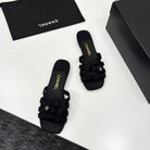 CC 25 Camellia Open Flat Mule Black Sheepskin And Fabric 368850