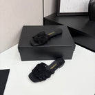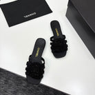 CC 25 Camellia Open Flat Mule Black Stone Grain And Sheepskin 368851