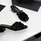 CC 25 Camellia Open Heel Mule Sandals 50mm Black Stone Grain And Sheepskin 368860
