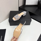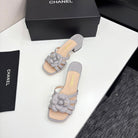 CC 25 Camellia Open Heel Mule Sandals 50mm Grey Beige Sheepskin And Fabric 368854