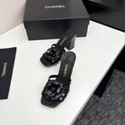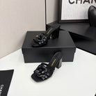 CC 25 Camellia Open Heel Mule Sandals 90mm Black Sheepskin 368843