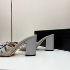 CC 25 Camellia Open Heel Mule Sandals 90mm Grey Beige Sheepskin And Fabric 368842